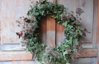 11月末に完成した今年の手作りリース。2週間半経過して、ローズマリーなどの青紫の花、紅葉などの色が抜けてきて、ますますシ…