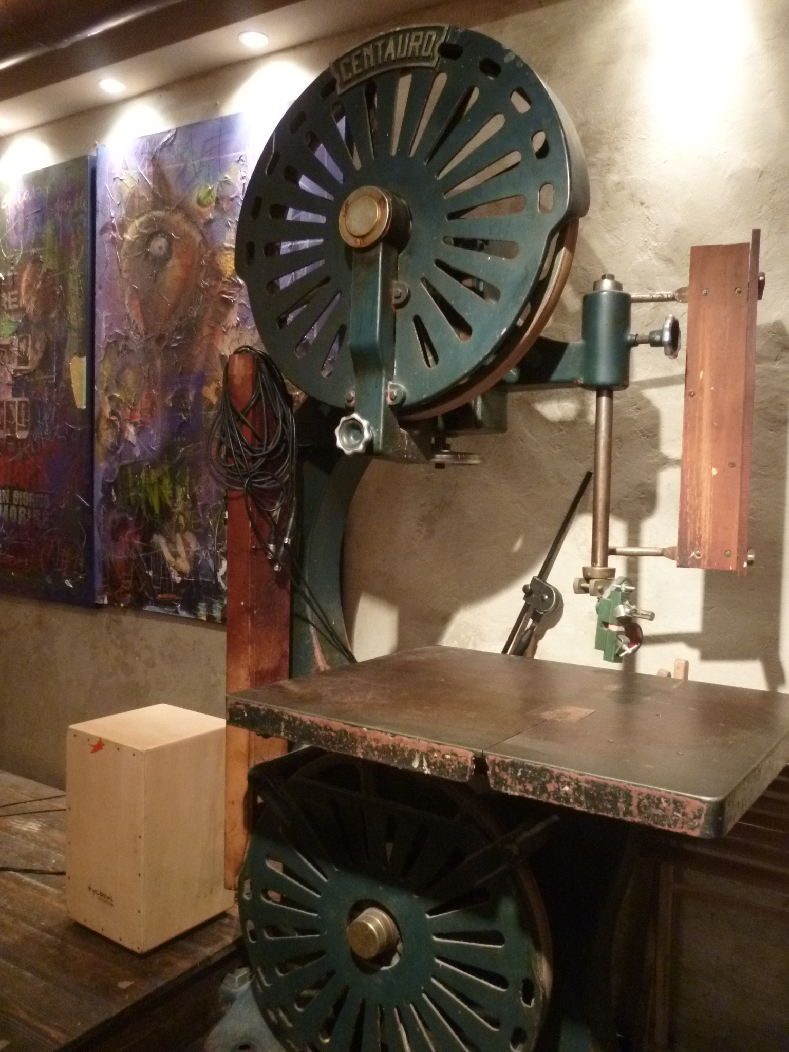 壁面にサラッと置いてあるオブジェ。実はここ、このお店は元々1887年から続いていた工房で、その時の工具や型が、そのままオブジェとして飾ってあるのです。よく見ると、中央左側にある大きな木製のテーブルも、金具付きの作業台を再利用したもの。他にも機械のついた台など、工房という過去の姿をそのまま残してるのですね。