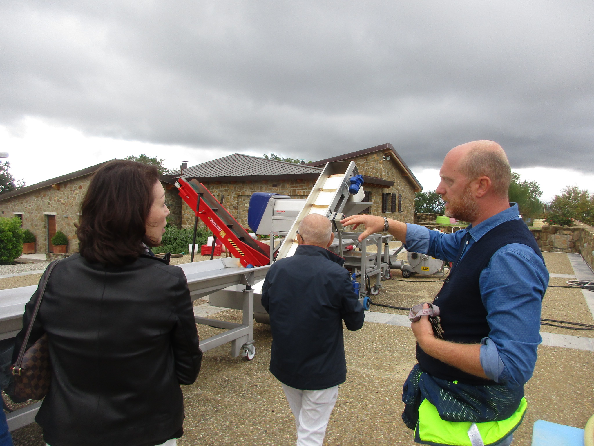ワイナリーの見学は、外から開始。 総面積40ヘクタール のうち、20ヘクタールがブドウ畑、4ヘクタールがオリーブ畑。いく季節によって、ブドウがなっていたり、紅葉が見られたりします。ブドウ畑のうち、 15ヘクタールがサンジョヴェーゼ種 、他の5ヘクタールがコロリーノとカナイオーロ、フランス種のブドウです。