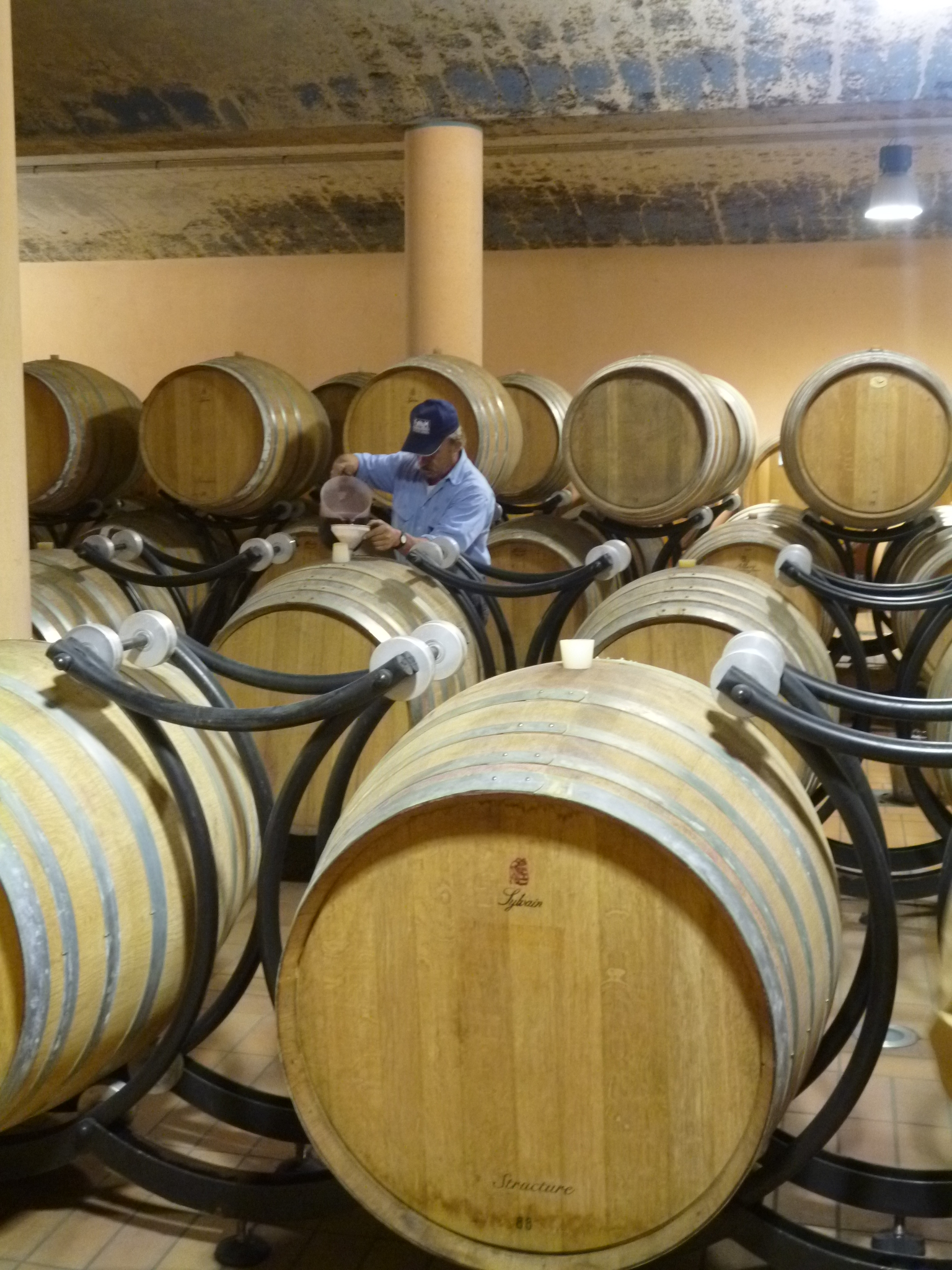 9月半ばに来た時は、ちょうど収穫したブドウを発酵タンクに入れたところ。ブドウ畑だけでなく、ここでも行く時期よって異なる作業がみることができます。