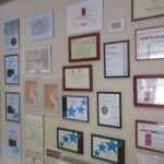 正面には、数々のイベントの参加章だったり、そこで獲得したメダルだったり(有名なワインガイド・ガンベロ・ロッソのトレビッキエーリ=最高評価も近年3回受賞 )大きなブルネッロのボトルがあったり、本のポスターも・・・実はこの本、創業者であるリッカルドのおじいちゃん・ピエルルイージさんの本なんです。