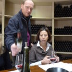 最後はお楽しみのテイスティング へ!部屋の両脇にはずらり、種類、年代の異なるワインが棚ごとに分けられています。ヴィンージワインもあって、ワイン好きの方にはたまらない空間です。