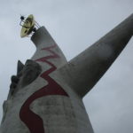 狭い場所ながら、壁一面に張り巡らせた色とりどりのホールド。ただ単に上るだけかと思いきや、テープでレベル分け+番号でコース分けされているので、それに従って上って行きます。スタートとゴールのホールドは両手で。手は指定のホールドしかつかめない&最初の4レベルは足は自由、その後は指定のホールドのみ。下りる時は全部自由。簡単そうに見えて、これが難しい!