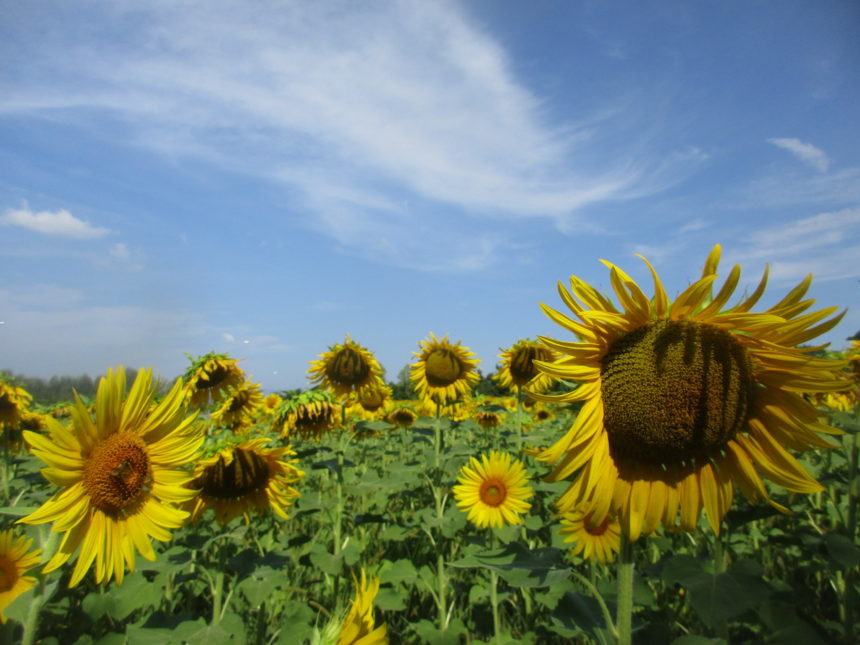 普段は車窓カメラマンな私も、これだけ見事なヒマワリ畑は毎年見られる訳ではないので、その先にある所でも停車してもらって撮影。