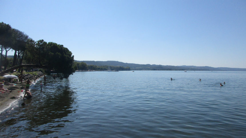 今まで、地元のビランチーノ湖、ウンブリア州のトラジメーノ湖、ラツィオ州のボルセーナ湖の3カ所で湖に入ったのですが、まずは圧倒的に人が少ない。喧騒がない!もちろん行く場所にもよるでしょうが、今回のボルセナ湖で行った小さな砂浜のフリービーチでは、私たち+1家族+おばちゃん1人。聞こえるのは、鴨のガーガーいう声と、ちゃぷ、ちゃぷ、という水の音だけ・・・海の賑やかさも好きですが、こんな中なら心身ともにリラックスできます。