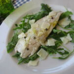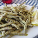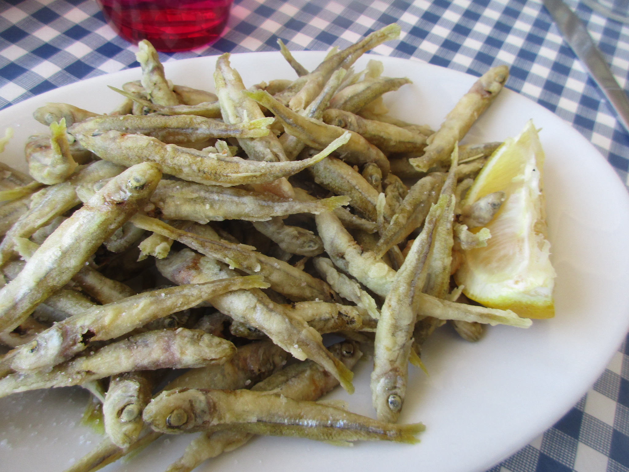 この写真を撮り終わったら、左上のクロスティーニと真ん中の揚げ物がすでになくなっていました(苦笑)。揚げ物の中身は魚系って意外定かではありませんが、クロスティーニはサーモンパテだったそう。クロスティーニから時計回りに、タコと野菜のマリネ、イカと野菜のマリネ、アンチョビ入りパンツァネッラ、コレ―ゴネのカルパッチョ、ラッテリーニのフライ、(おそらく)コレ―ゴネのボイル&海藻?ソース。コレ―ゴネはホワイトフィッシュの一種、ラッテリーニは日本語名不明ですがこんなん、どちらもボルセーナ湖で採れる淡水魚です。コレ―ゴネのカルパッチョは生でなくマリネされていて、パルミジャーのチーズととっても合い、超美味でした!