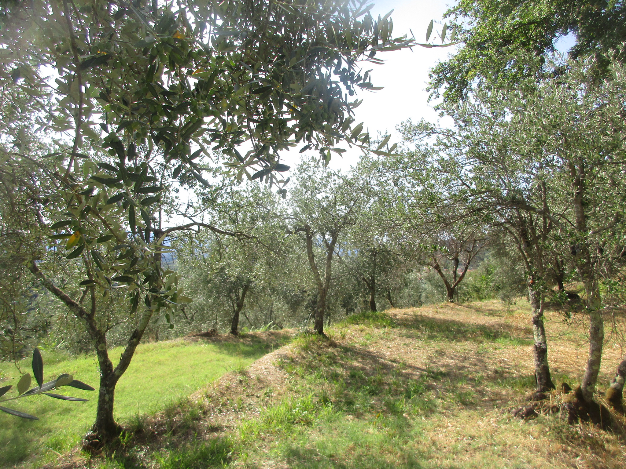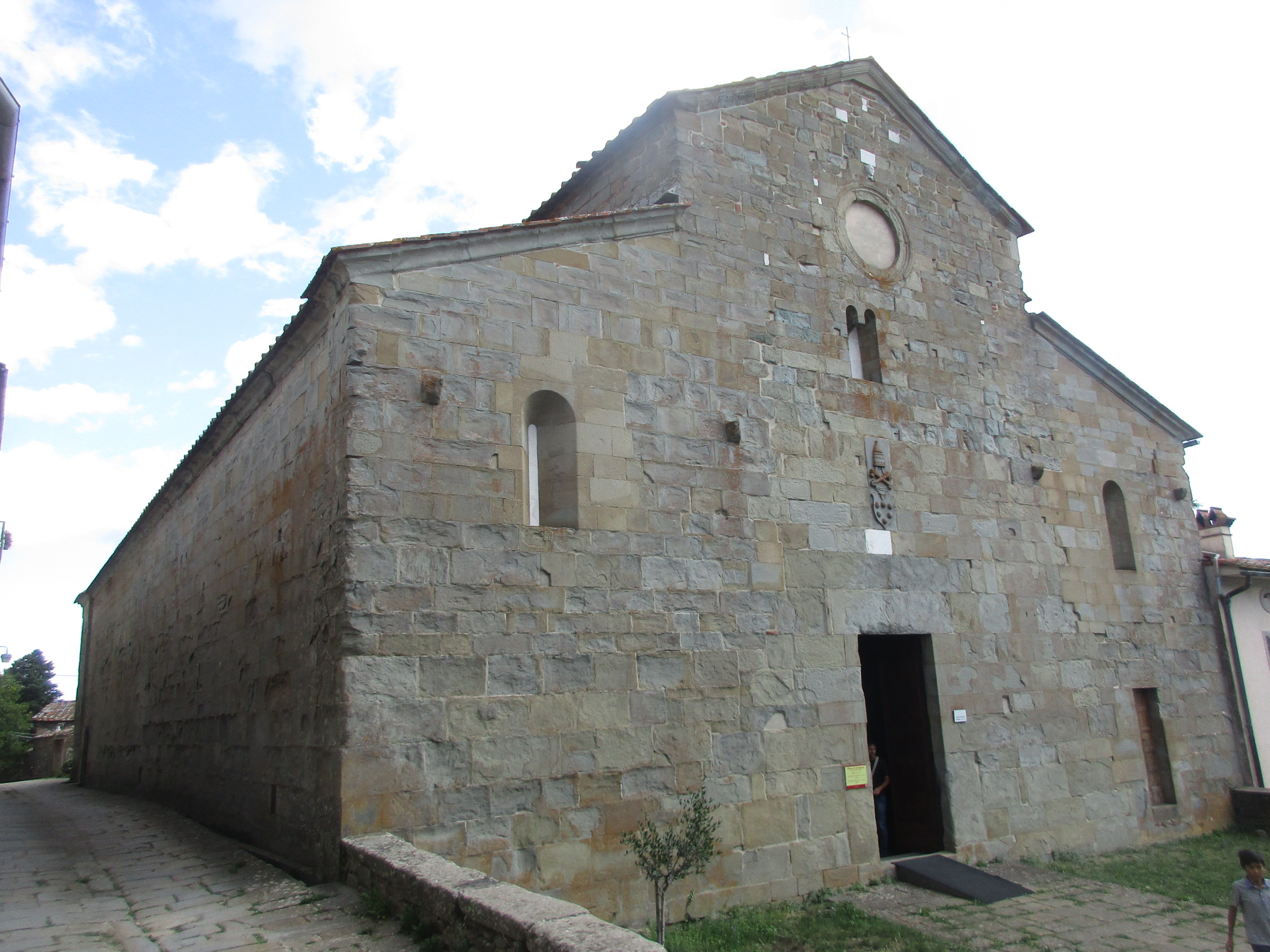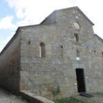 ロ―ロ・チュッフェンナの旧市街から約2キロ、山の中の集落にあるロマネスク様式の教会です。集落に入る前に右側に小さな駐車場があり、そこに車をおいてオリーブの木に囲まれた中を歩いて行きます。するとほどなく、緑の中に石造りの建物が・・・右奥がその教会、サン・ピエトロ教会です。