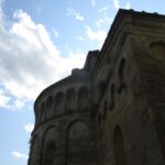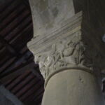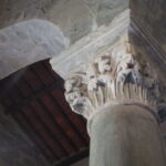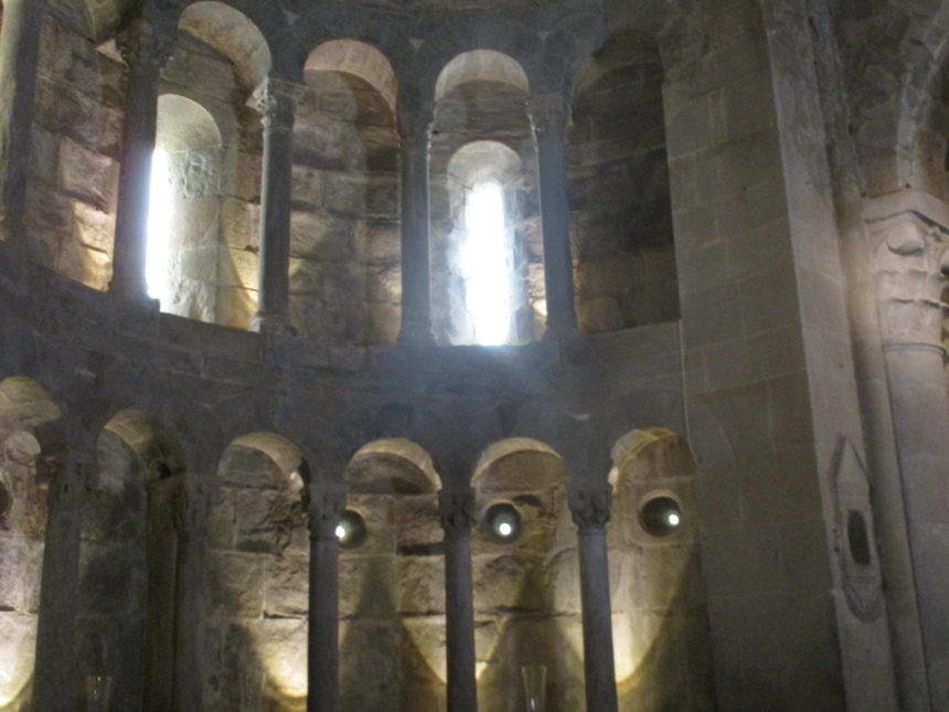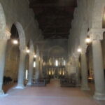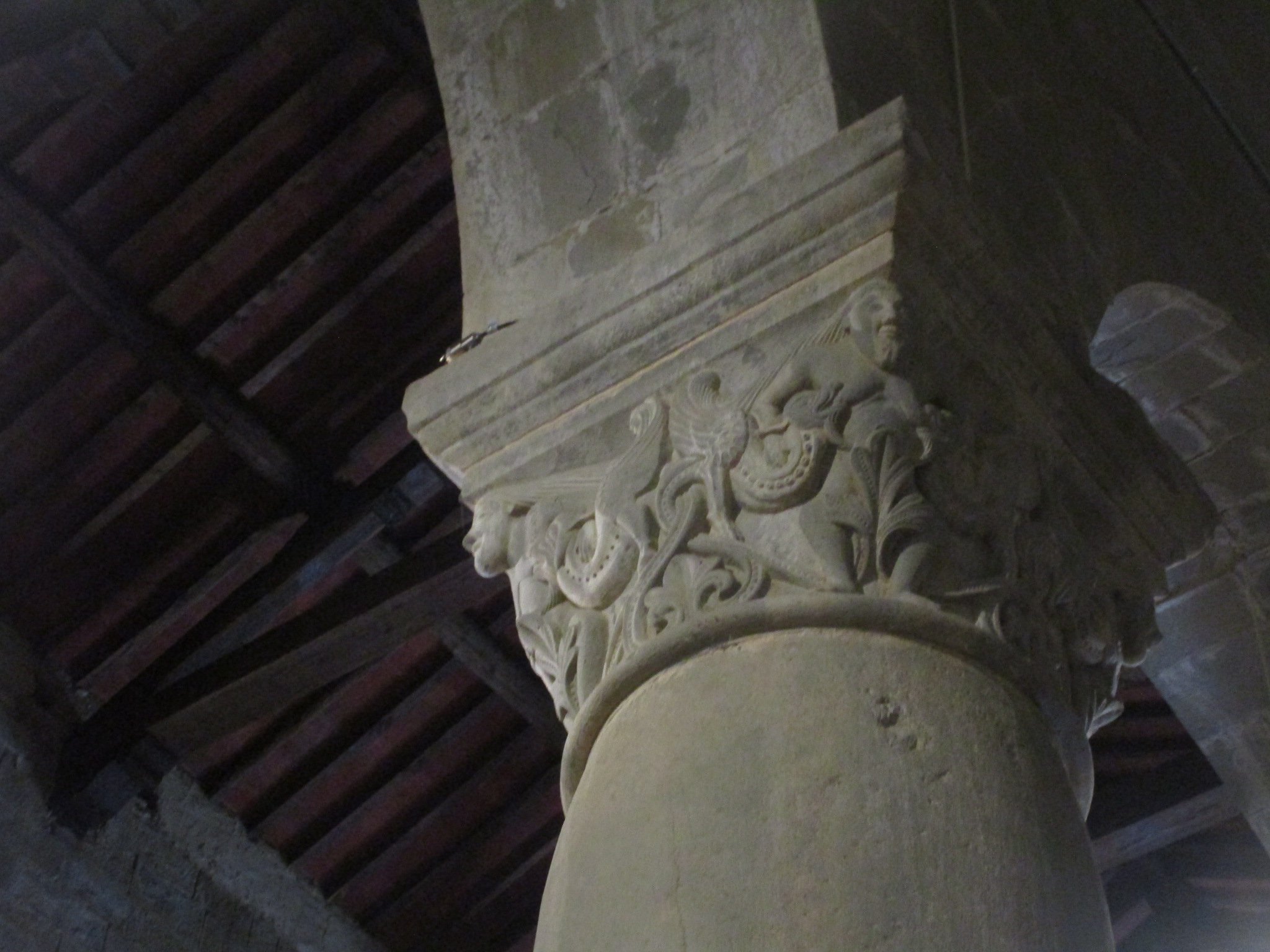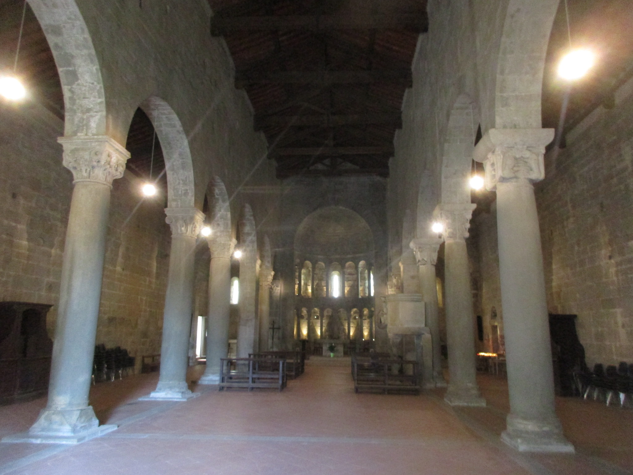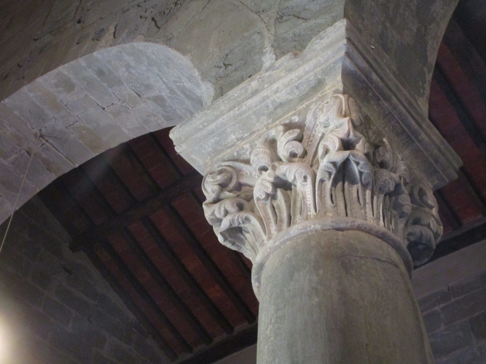 教会は三身廊からなり、彫刻の立派な柱とアーチによって分かれています。そのアーチと柱が後陣にも・・・これってそのために後陣の奥行を深くして、手前に柱とアーチを作って立体的にしてるんですよね。これが1000年以上前の建立とは信じられないくらい、とても美しく保存されています。ファサートの扉の横木にはおそらく改修された年=1422、メディチ家のレオ10世の紋章下の横木には1522年の年が刻まれており、この教会が生きてきた歴史が感じられます。