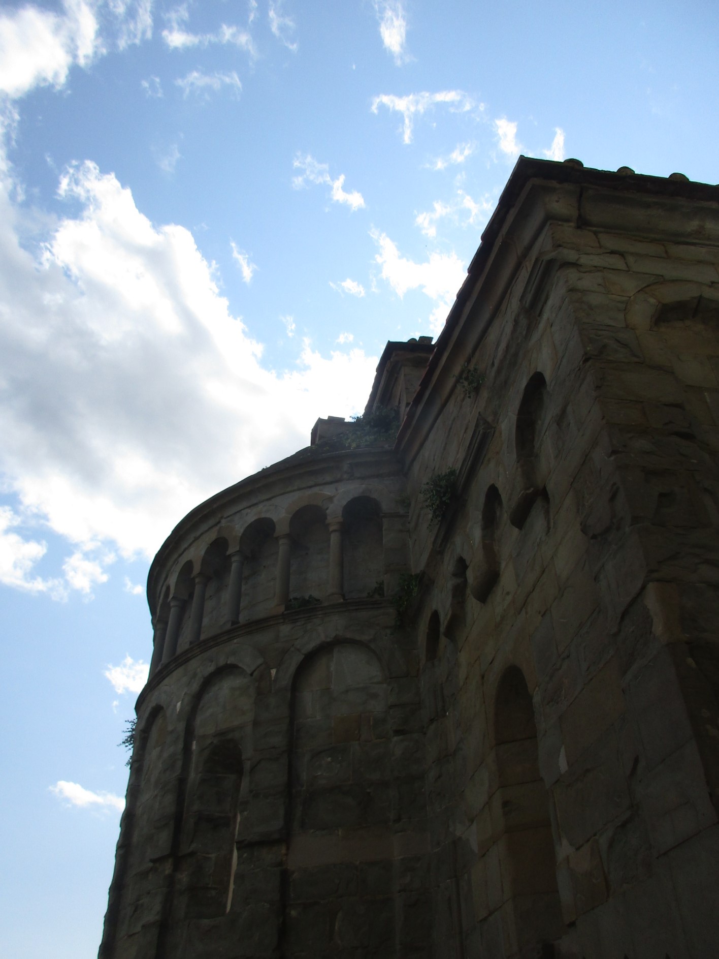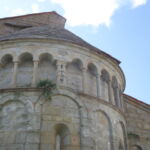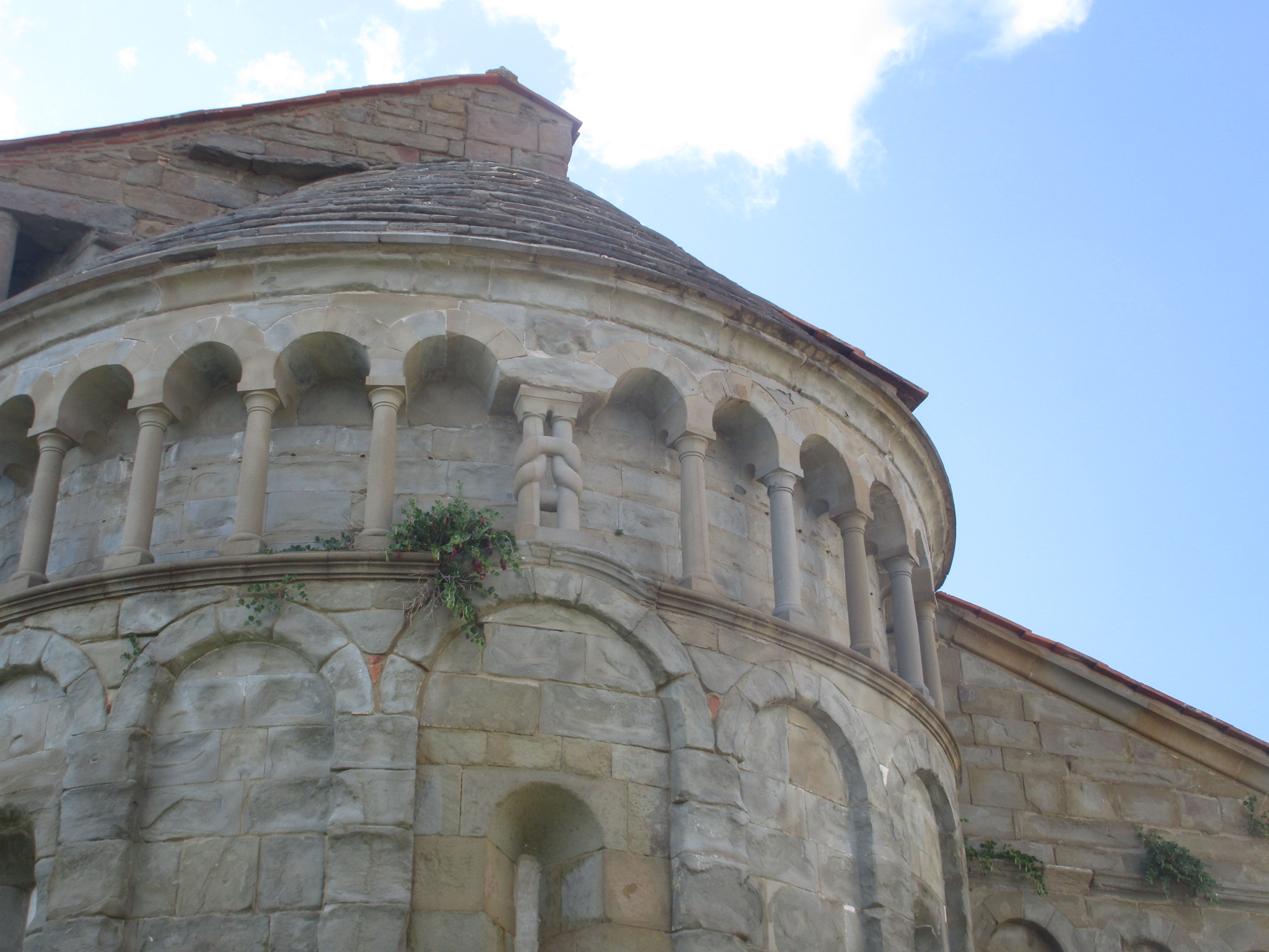 トスカーナにはサンタンティモ修道院、そして小さな所ではコルシニャーノ教区教会など、たくさんのロマネスク様式の教会が残っていますが、このサン・ピエトロ教会は、そのうちでも「最高峰の1つ」とされています。私は数年前に友人のFB投稿からその存在を知り、写真を見て感動し「いつか行ってみたい!!」と思っていたのです・・・それが、この後陣。