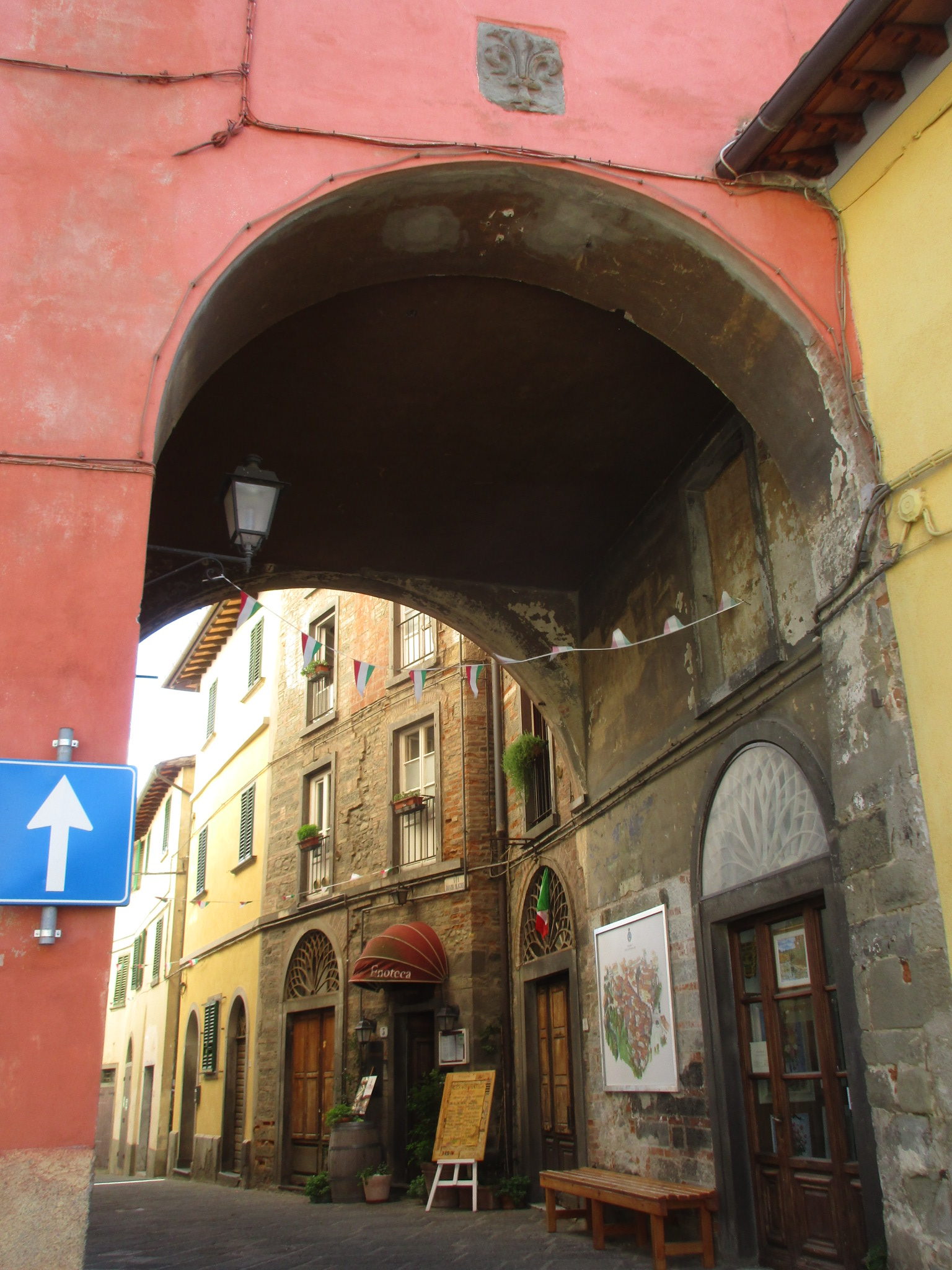 フィレンツェ県から車で1時間ほど、フィレンツェとアレッツォの間・アルノ渓谷にあるのが、このロ―ロ・チュッフェンナ。山に囲まれた自然の中に、時計のあるピンクの塔が見えてきます。「イタリアの美しい村」にも選ばれており、昔の良き小さな村のたたずまいが残っていながらも、ほど良く市民や訪問者の活気もあって散策が楽しい村。おススメは旧市街の中心、ジャコモ・マッテオッティ広場にあるツーリストインフォメーションで地図をもらい、そこに記されている旧市街散策ルートに従って歩いてみること。もちろん、気になる路地などを見つけたら寄り道もOK、グロピナのサン・ピエトロ教会など遠目の場所は車で行くなど、アレンジしながら行ってみましょう!