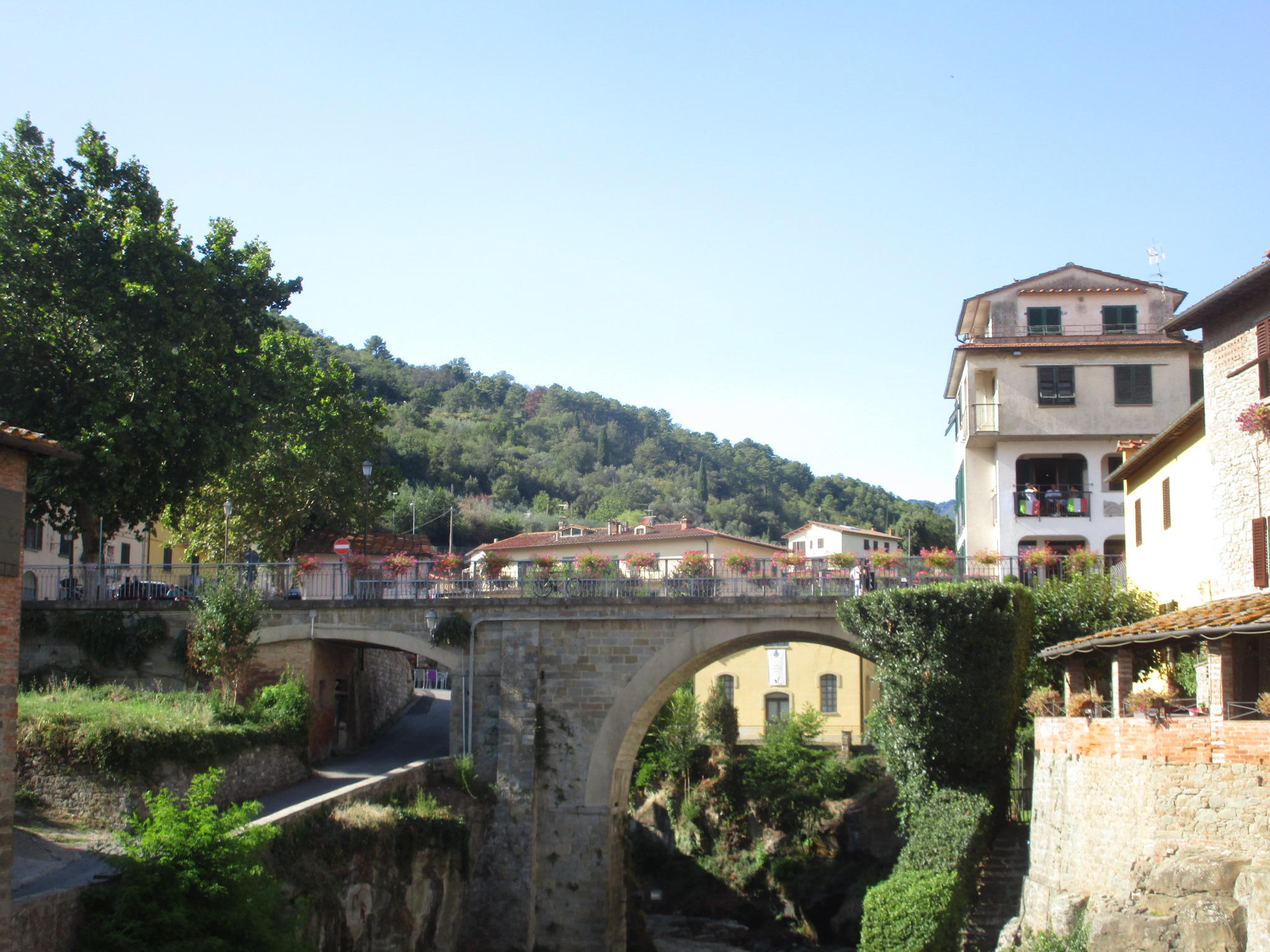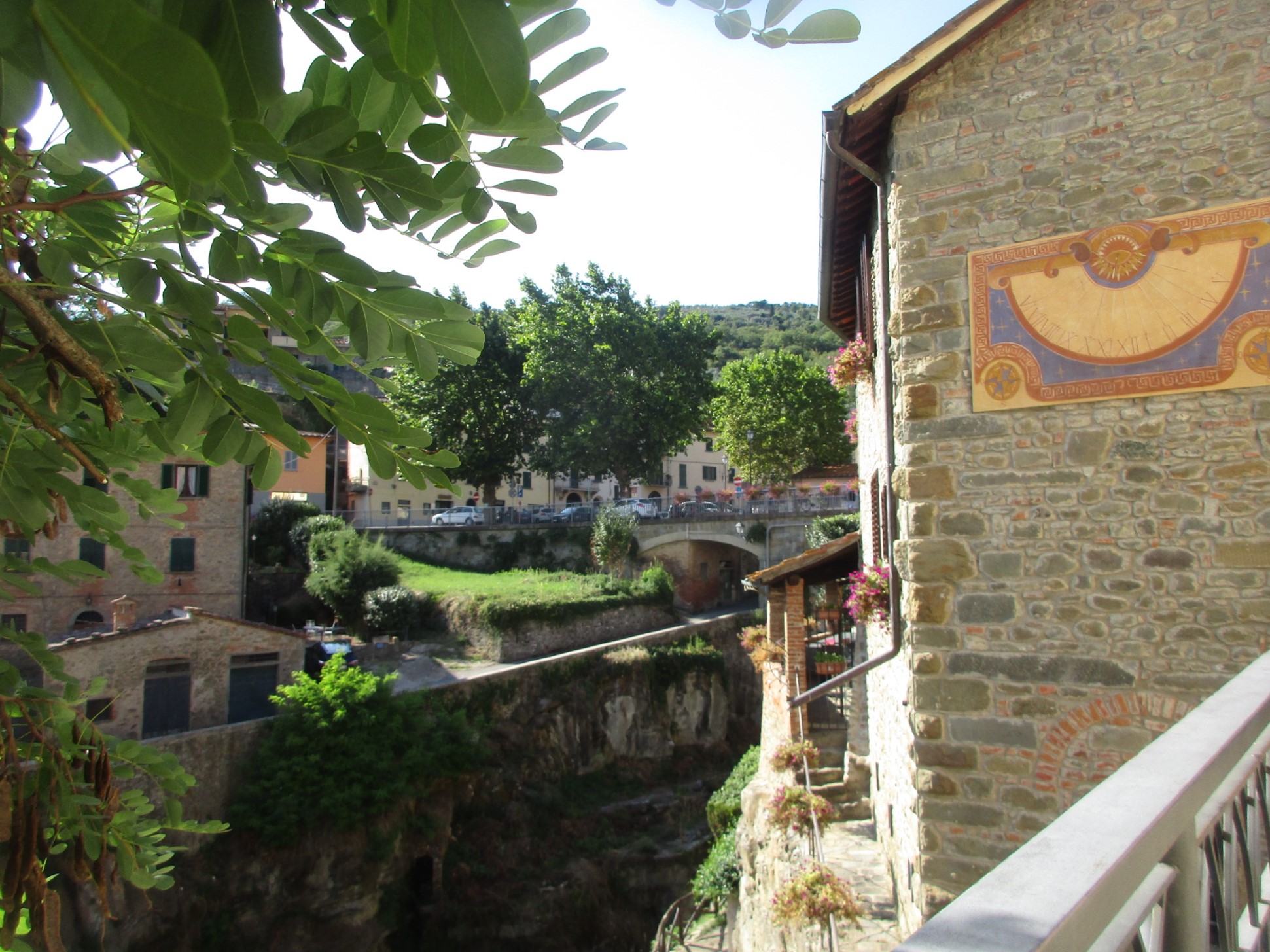 ツーリスト・インフォメーションを背に右側には、細い渓流・チュッフェンナ川にかかる長い橋があります。そこから、ロ―ロ・チュッフェンナの有名なものを眺めてみましょう・・・トスカーナでまだ使用できる(!)一番古い水車、なんと1100年頃からあるもの=900年!!現在も、この地方の特産物である栗を挽くのに使用されているそうです(他の観光サイトを見ると、室内の写真があったので、この中にあるのかと思われます)