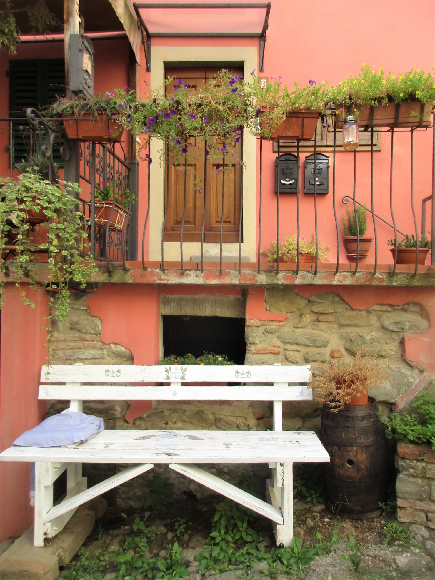 ローマ橋を渡って右へ曲がり、アーチを抜けると可愛らしい広場が。洗濯物もはためいていて思いっきり居住空間なのですが、美しい町は住む人の美意識なのか、玄関や窓周りなども花や雑貨で飾られていたり、ベンチが置いてあっていくらでも写真を撮りたくなってしまいます。