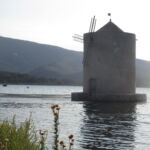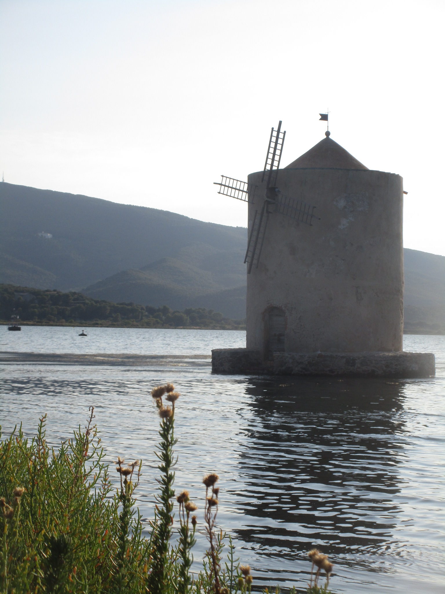 教会から更に西へ向かうと、そこは海・・・いや、潟。そこにぽっこり浮かんでいるのが、「スペインの水車」。元々はシエナ統治時代に小麦を挽く目的で建てられたもので、その後のスペイン統治時代に再建されたことから、スペインの水車と呼ばれています。当初はオルベテッロ潟に水車は9台あったそうですが、現存するのはこの1台だけだそうです。
