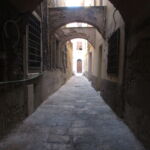 城壁の門をくぐると大きな広場に出て、最寄り駅とモンテ・アルジェンタリオをつなぐバスのバス停もあります。これ以降、旧市街の中にはバスは通らず迂回するので、オルベテッロの旧市街を散策される方はここか、次のバス停(旧市街のここと反対側)で下車しましょう。この広場からは向こうは路地が多く、小さな村好きの方がワクワクするシーンにたくさん出会えます。