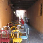 中心になる広場にあるのはポデスタ宮。爽やかな黄色で可愛らしい建物ですが、17世紀のスペイン統治時代に総督が住んでいた建物だったそうです。広場にはカフェのテーブルがいっぱい出ていています。
