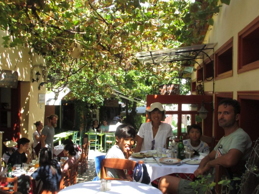 国立考古学博物館から徒歩10分くらい。落ち着いたExarchio地区にあるカジュアルなお店。ロードス島でもアテネでもたくさん見た、ブドウ棚のテラス席のあるお店。店内はトイレで入りましたが、席数が多い!イタリアでは道にせり出したテラス席はあるけれど、店側だけではなく道の反対側にもテーブルを出し、真ん中を通行者を通るのはギリシャならではなのかな?それはさておき・・・ギリシャのシンプルな料理が、なかなかのボリュームで出てきます。ここでは前述のPalio tetradioで食べ損ねたムサカ、そしてイタリアンパセリのサラダ、ラムのグリルなどを食べました。写真がないのですが、長男がオーダーした、スパイスの効いたギリシャソーセージに卵をのせてオーブンで焼いたのも、超美味しかったです!
