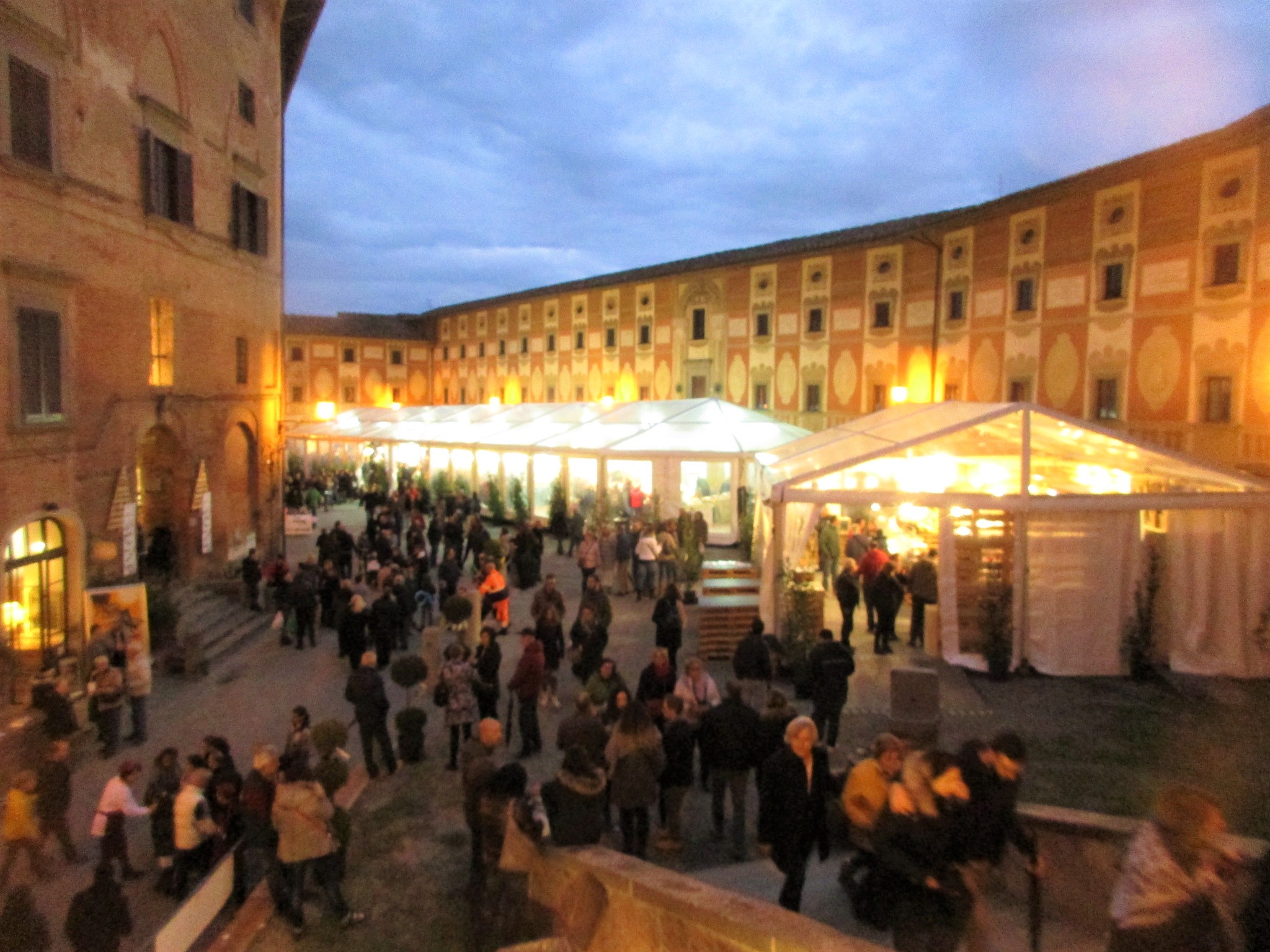 さて、サンミニアートのお祭りに話を戻すと・・・例年11月の2・3・4週目の週末に行われ、毎年すごい賑わいを見せています。もちろんトリュフがメインなのですが、チーズ、サラミ、お菓子など、トリュフ以外の特産物もてんこ盛り!まさにイタリア料理好きや美味しいもん好きにはたまらないイベントなのです。バスで到着すると分かるように、旧市街が全て会場!まずはあちらこちらで配布されている地図をGETして、お目当てのエリアに足を運びましょう。とにかくトリュフ!!という方は、まずは旧市街の一番高い所にある、ドゥオモ広場へ!