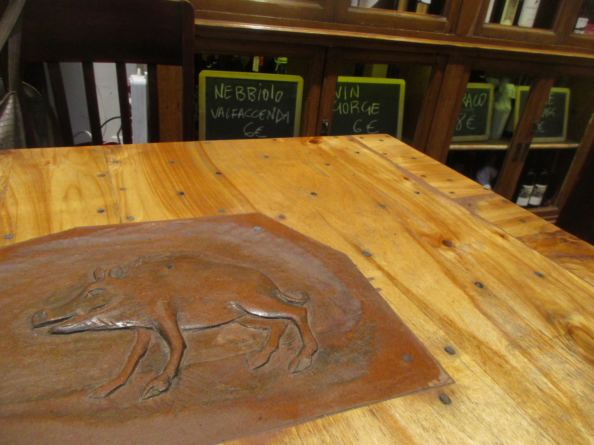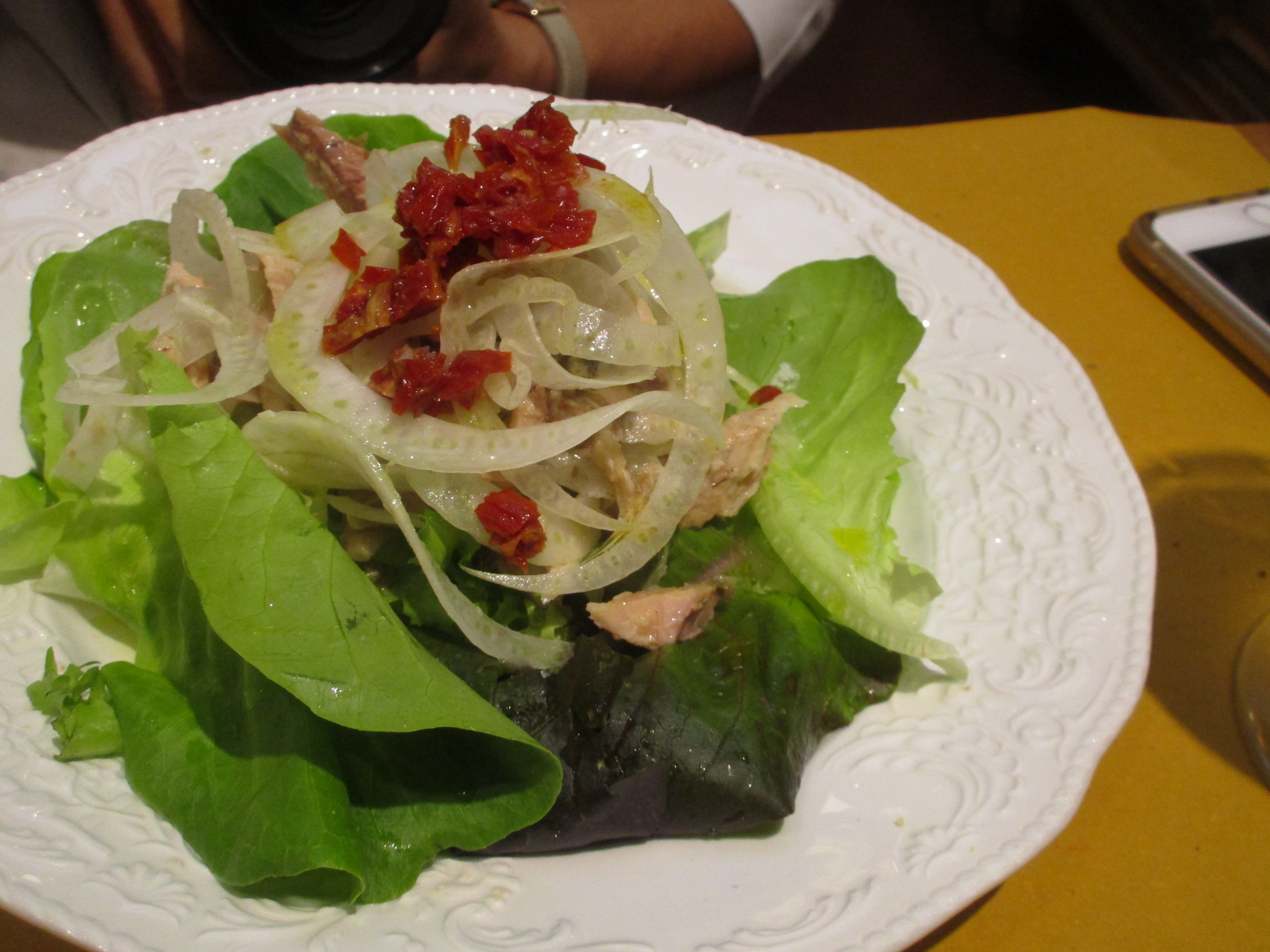 この日のメニューは、私も知らなかったテスタローリというパスタの黒キャベツソース、パ二ガッチは確かパニーノ系、嬉しいのは野菜&魚メニュー多し!秋野菜のココットに、燻製ニシンとシトロンのサラダ、牛タンのサラダ、サバのサラダ。そしてソムリエ兼給仕係のダヴィデさんにお好みのワインを聞いて・・・