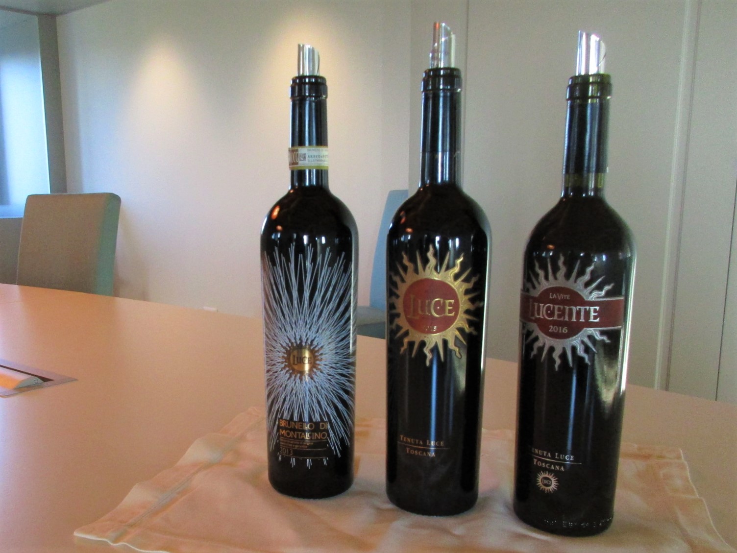 最後はお約束のテイスティング、どのワインも例年発売と同時に売り切れとなってしまうので、一番新しい年のものになってしまいます。複数本テイスティングする時の基本は、軽いものからボディのしっかりしたものへ、ということで、ここではルチェッタ、ルーチェ、ブルネッロの順にテイスティング。