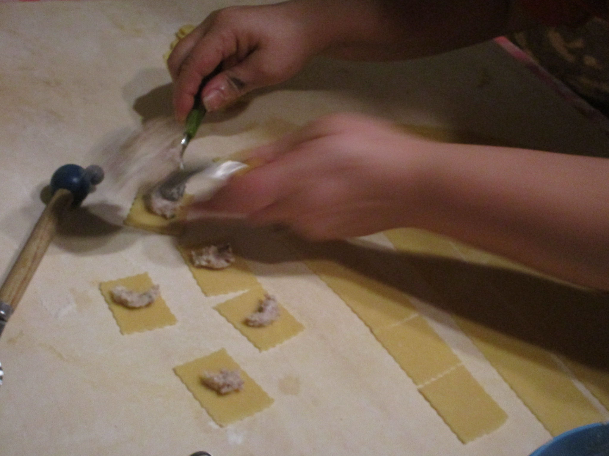 定番の肉系詰め物に、ここの長女ちゃんがベジタリアンなのもあってチーズ系の2種類の詰め物を。食べ方もブロードとミートソースの2種類。そしてメインは、豚の背肉にハムとチーズを挟んだもののオーブン焼き・・・いつもよりやはり豪華なラインナップとなっております!