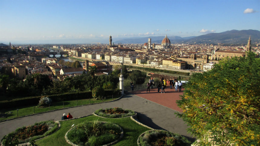 母が24年前に初めて見たこの景色、これがきっかけでフィレンツェに来て、ダンナと知り合って、そしてアンタができたんやで?・・・と語りたい衝動を抑えながら?いやいや、そういう私かて、息子とここに来るなんて、そして当時の私と同じようにイタリアの、いやフィレンツェの歴史にハマっている息子とここでフィレンツェを語るなんて、24年前には全く想像していなかったこと・・・。ジ――――っとこの景色を眺めてつぶやいた長男の一言は、「フィレンツェ、めっちゃキレイなぁ」・・・24年前の私と同じこと思ってるやんか!