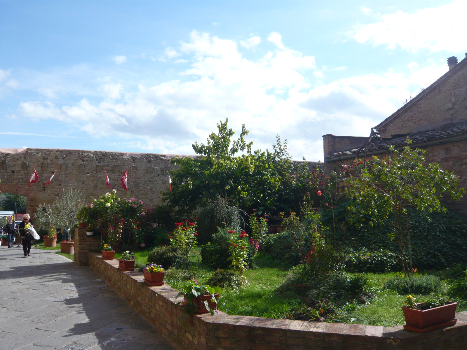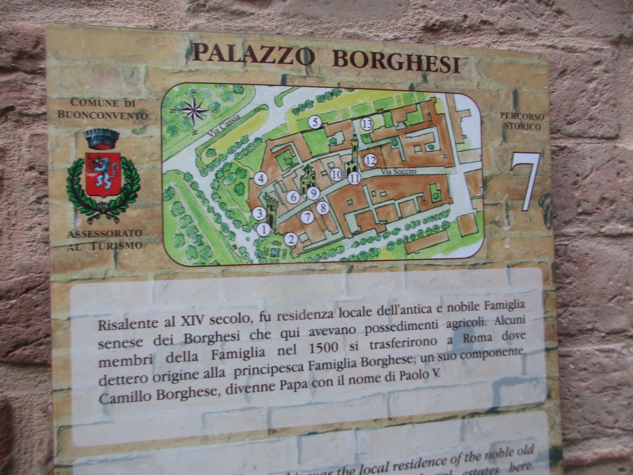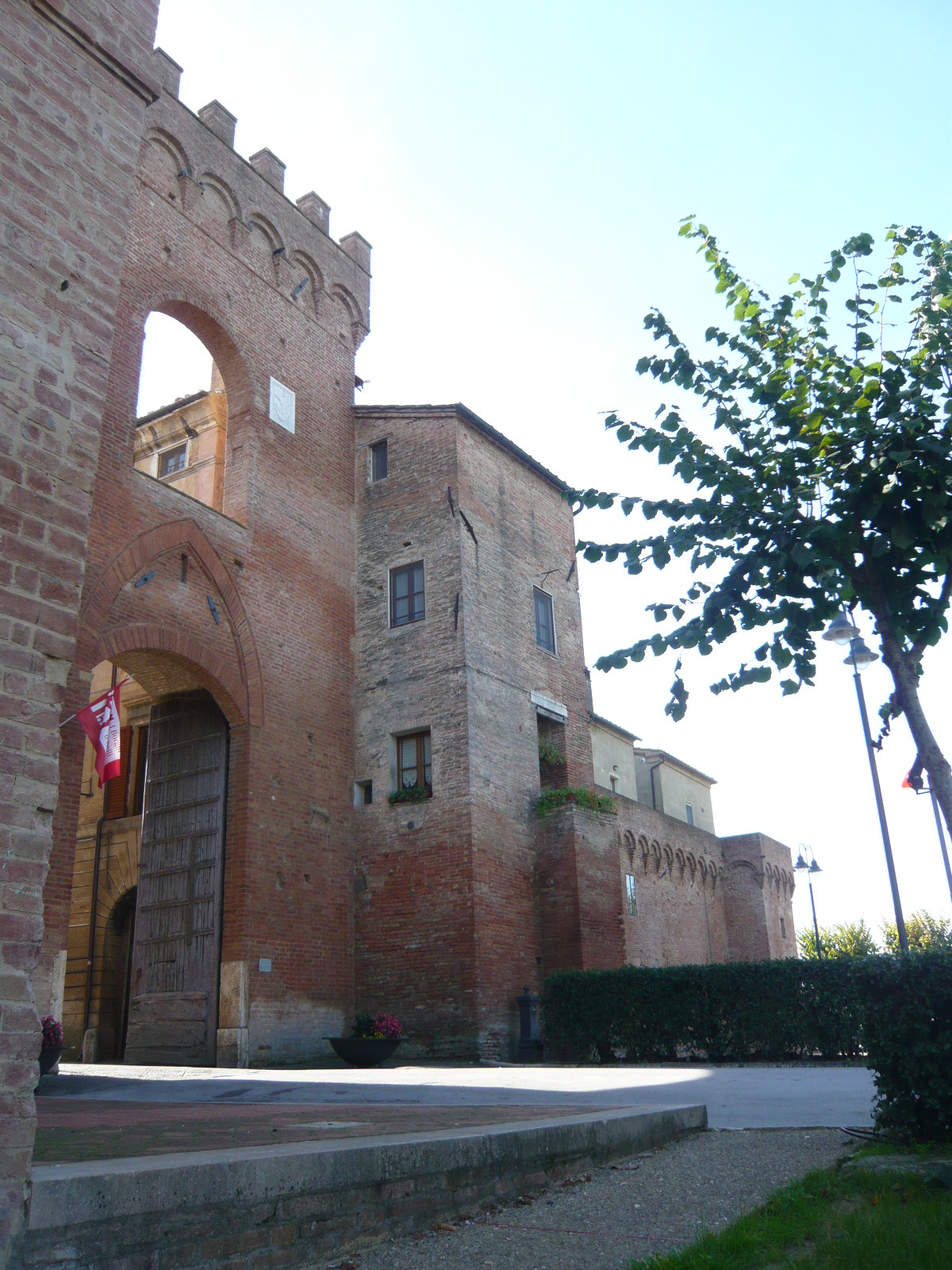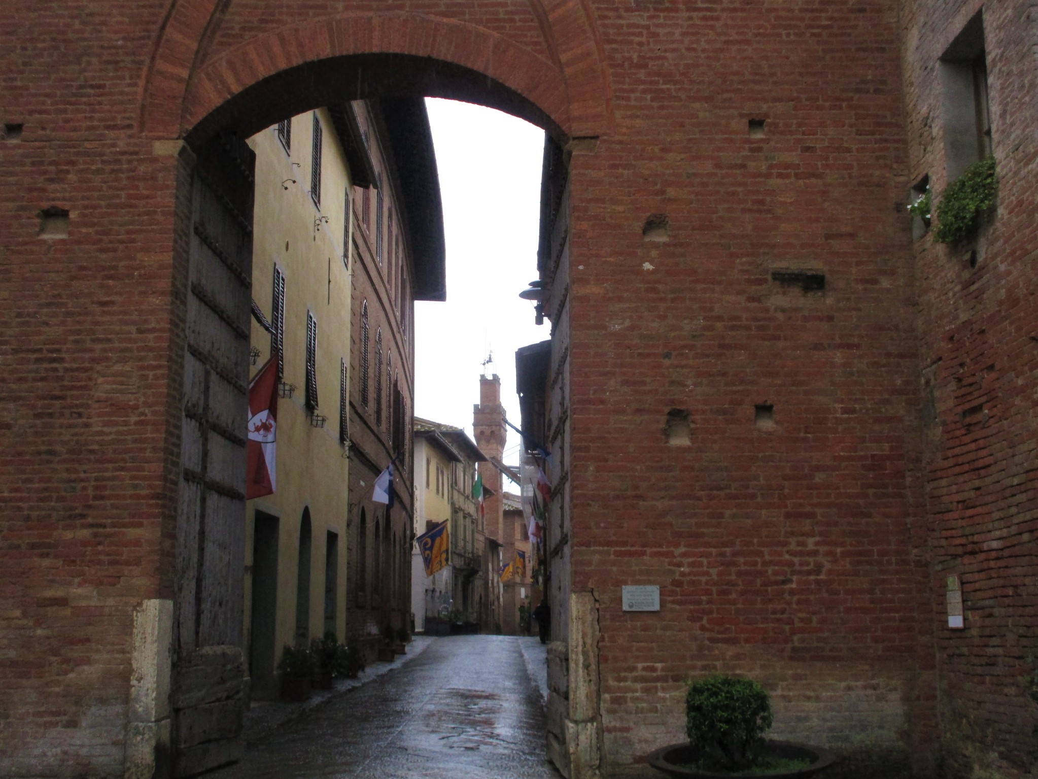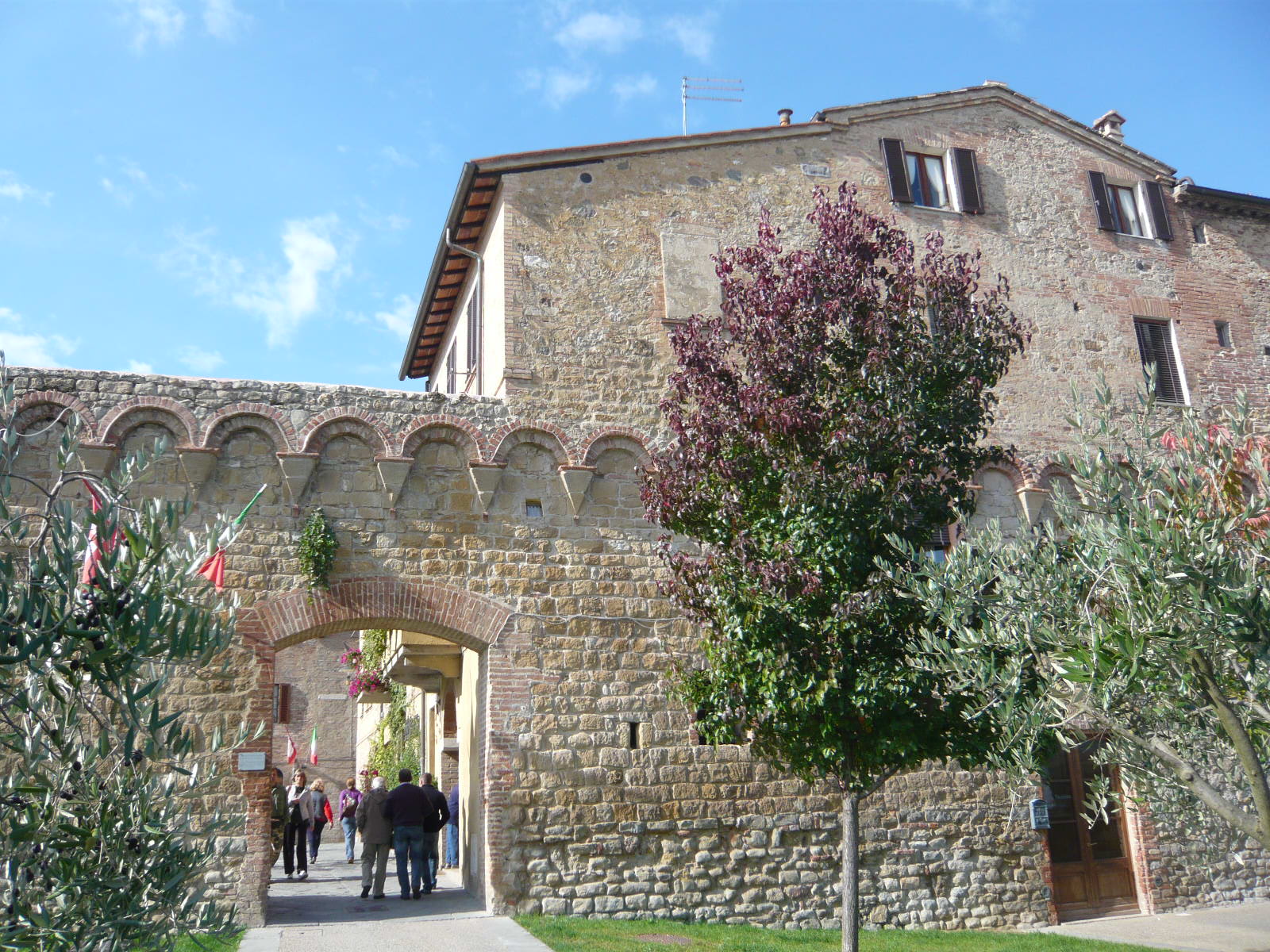 先日再訪したときがザザ降りの雨だったので(号泣)写真がちょっと残念ですが・・・村の歴史は中世に遡り、1100年頃から存在していたそう。この村の名が大きく歴史に刻まれたのが、神聖ローマ帝国のルクセンブルク家・ハインリヒ7世がこの地を訪れた時の伝説~この地の牧師に毒をもられ、暗殺されたそうなのです。ハインリヒ7世は皇帝の戴冠を授かる為にローマに向かっていたそうですが、中世の小都市乱立時代、皇帝派と教皇派との争いも絶えなかったイタリアでは、神聖ローマ帝国皇帝の来訪は大きな混乱をもたらしたようですね。現在でも、1371年から建設された城壁のほとんどが残っており、南北にちゃんと門が残っています。村はシエナ共和国の一都市でしたが、1559年以降はトスカーナ公国に併合されました。