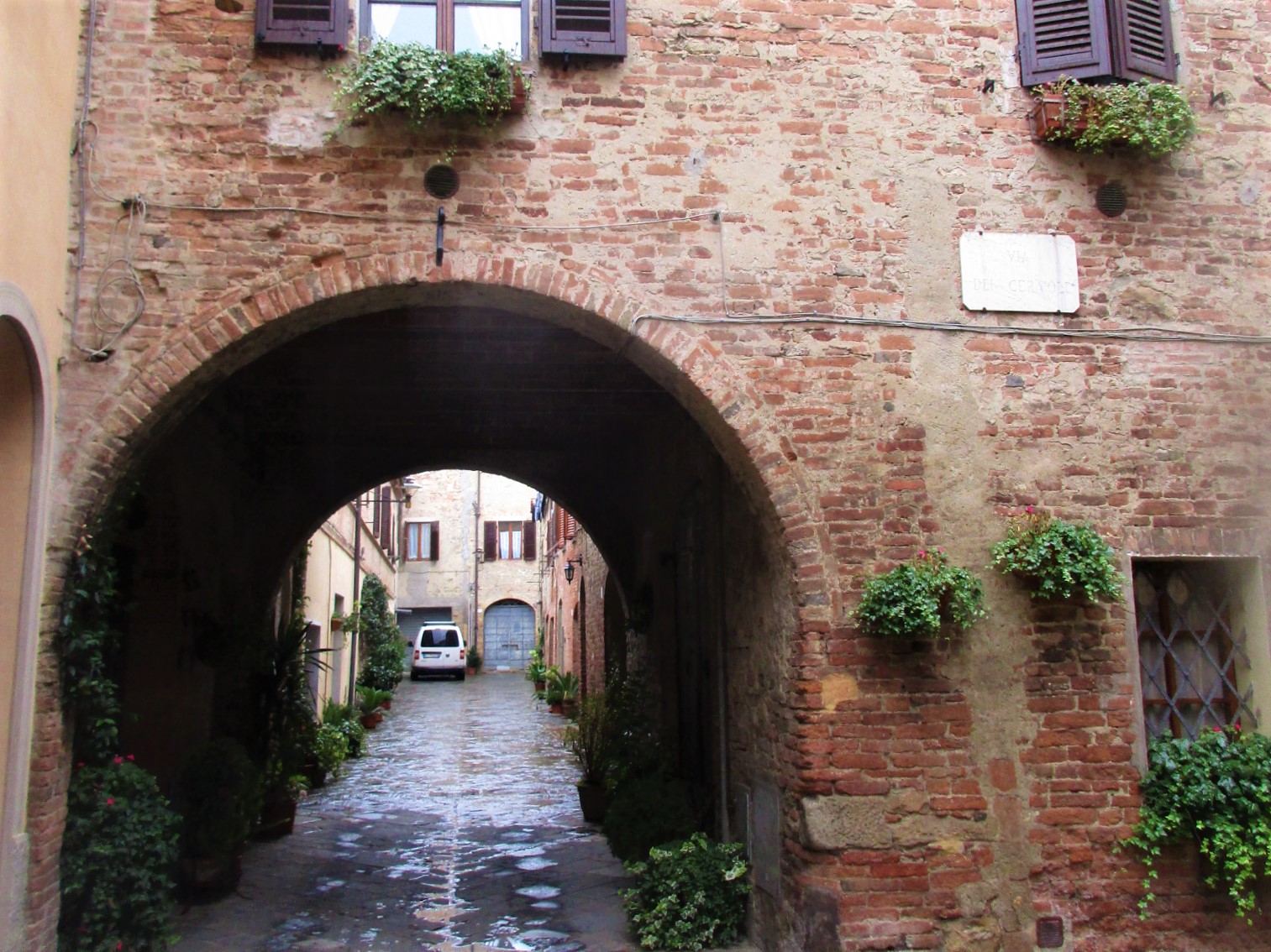 メインストリートを見終わったら、あちこちにあるアーチを潜り抜けて、路地に入ってみましょう。これはソッチ―二通りからアーチをくぐり、並行して走る小さな路地。もう、ここがめちゃめちゃ素敵で、雨の中何枚も写真を撮りました~今度は晴れの日に来て撮影したい!と思うくらい、素敵な通りでした。