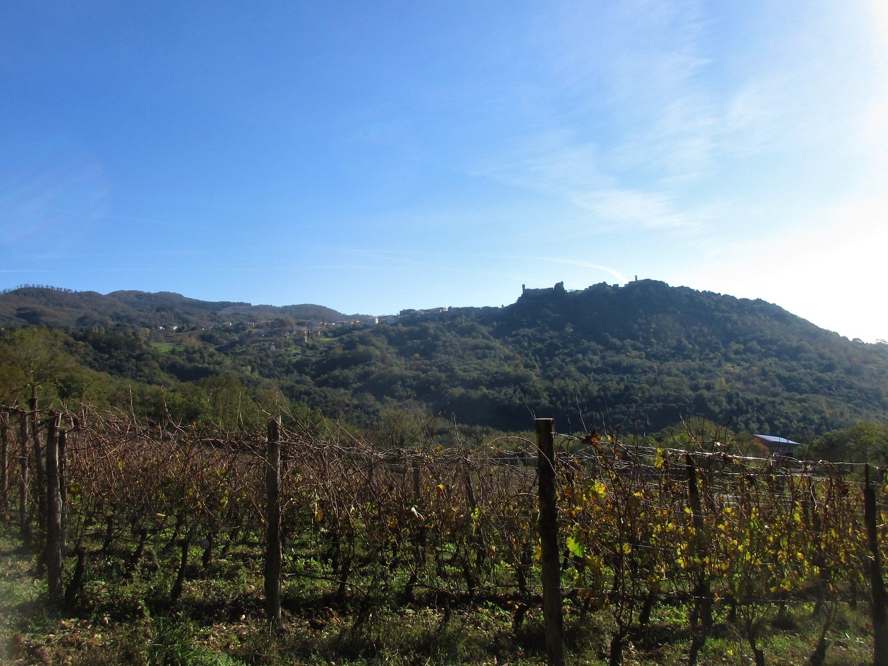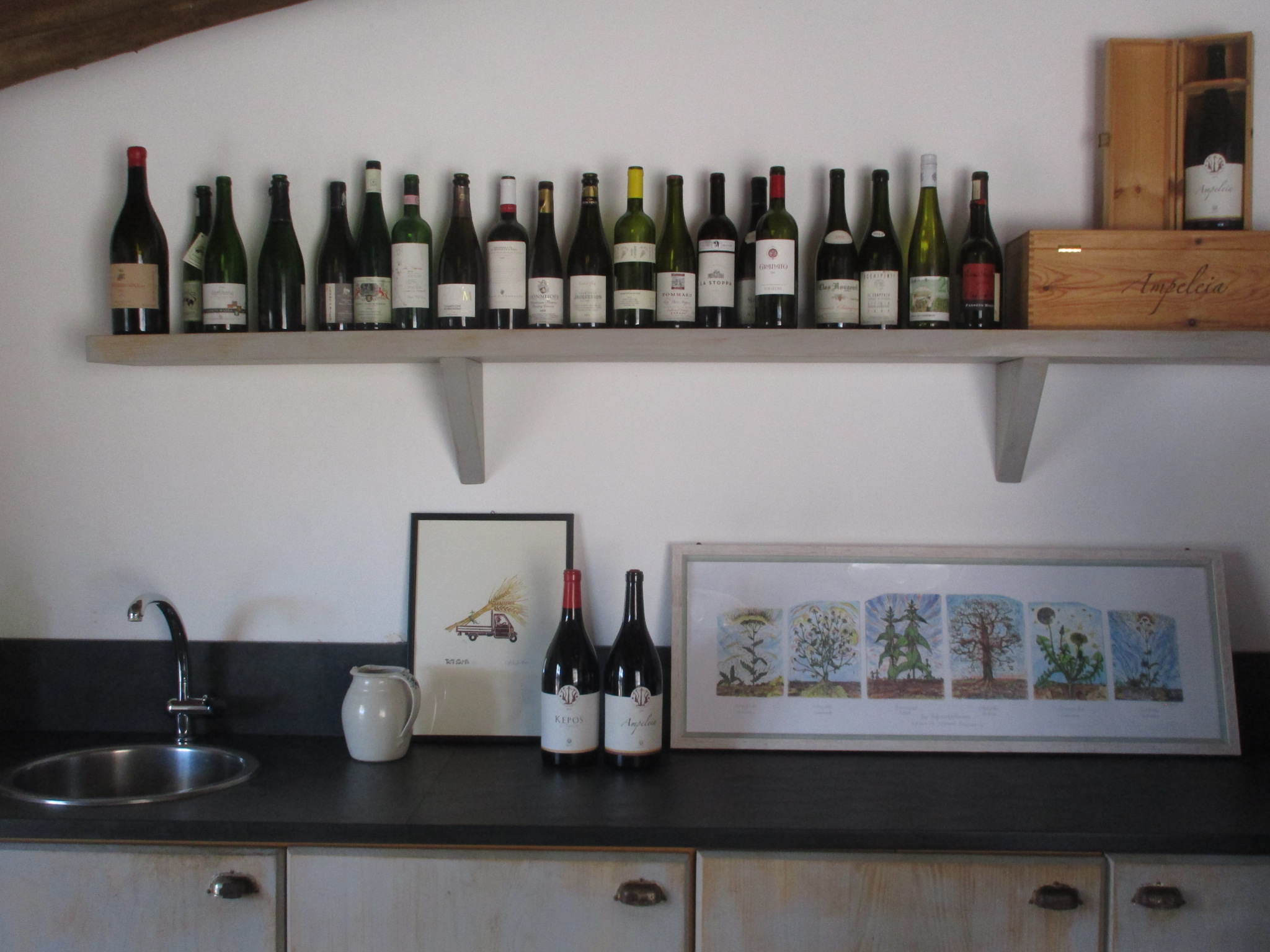 さて、今回紹介するのはボルゲリゾーンから南に下がったマレンマ北部に位置するワイナリー「アンペレイア」。キアンティやモンタルチーノの一面ブドウ畑を見慣れた人は、山の中に点在するブドウ畑にちょっとビックリするかもしれません。ここは、トレンティーノにワイナリーを持つ女性が、新たなワインの可能性を求めてイタリア中を探し歩いた結果、この地にほれ込んで一から作ったワイナリーです。開設当初からある一番標高の高いブドウ畑(標高450~600m)から、中ほどのブドウ畑(標高250~350m)、下のブドウ畑(標高200m前後)と拡張し、それぞれの土壌や気候にあうブドウを栽培しています~2009年からは全面的にビオダイナミック農法にシフト。