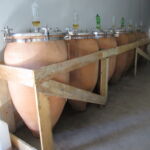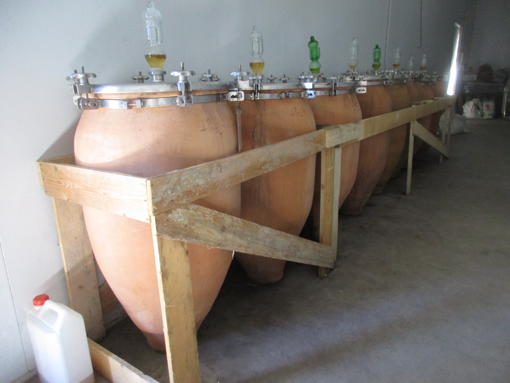 このワイナリーの代表的なワインでかつワイナリーの名前のついた「アンペレイア」の一部工程や、メルロー100%のエンパティアではほぼ全ての工程で木製の樽が使用されていますが、それ以外は全てセメントの容器を使用。最近復活したテラコッタ容器も、実験段階で導入するなど、新しいワイナリーの革新を起こす意気込みを感じます。