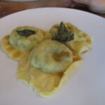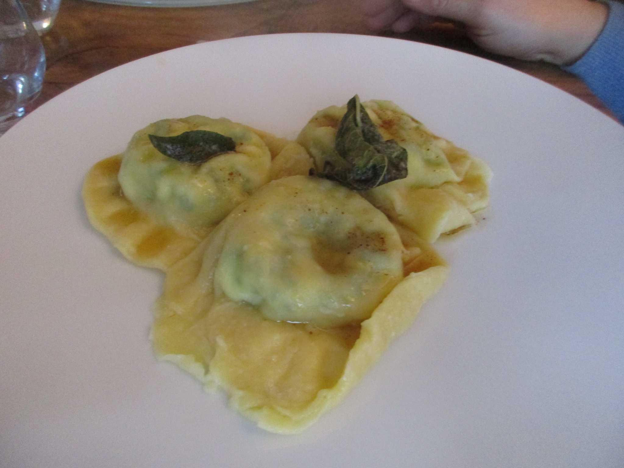そして、待望のトルテッリは、デカい!そして具がパンパン!中の具は、リコッタチーズとほうれん草とトスカーナで定番の具のトルテッリで、ソースは牛肉のラグー、イノシシのラグー、野ウサギのラグー、ポルチーニ、きのことトリュフ、チーズとこしょう、バターとセージ、の7種類から選べます(トルテッリだけでなく、手打ちパッパルデッレもこの7種類からソースを選べます)。