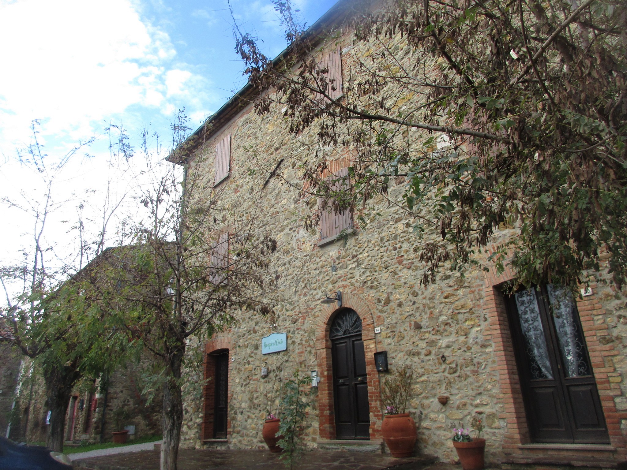 リヴォルノ県南部の「イタリアの美しい村」にも選ばれているスヴェレート。その村の近郊の、とってもとっても小さい集落にある、B&B兼レストラン「ベルヴェデーレ」。くねくねと坂道を登り切ったら、最後に到着するこの集落に、まずは一目惚れ・・・。11月だったせいもありますが、私たち以外誰も外に人はおらずひっそりとしている集落。石造りの建物がそのまま残り、まるでおとぎの世界に入り込んだかのようです。