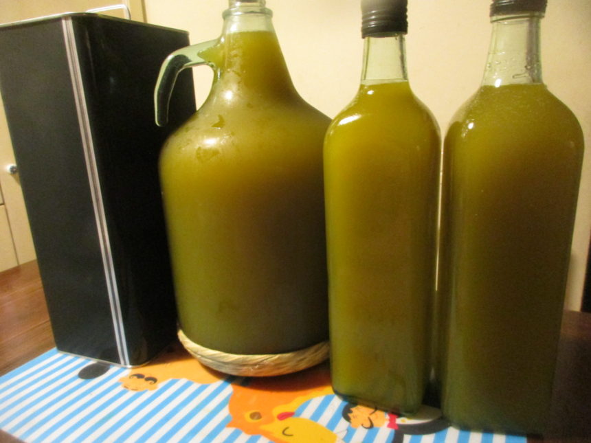 一部は塩水漬けに。そして残りはフランチェスコにあげて一緒に搾油してもらい、先日、新オイルを持ってきてもらいました~10リットルは購入、2リットルはあげたオリーブの分=うちのオリーブは15キロほどで、搾油率は14%だったのでなかなか良い実だったのかな?(良くて16%、悪くて10%ほど)。我が家のオリーブの実だけで搾油した訳ではないけれど一部は間違いなくうちのだし、そしてフランチェスコ宅の収穫もちょっとだけ手伝ったから、まぁ「マイオイル」と言っても良いでしょう(かなり大雑把だけど・笑)。なので、味も格別!