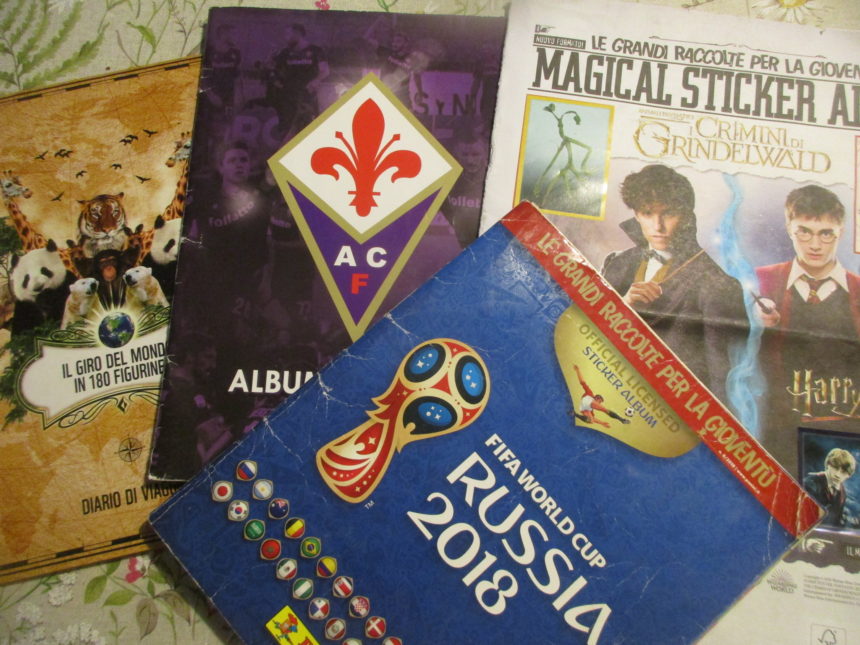 イタリアの幼稚園~小学校の子供がハマるものの1つ、いや最たるもの?が「フィグリーネ」。フィグリ―ネは Figura = 姿、人物像、に -ina 縮小辞(-e は複数形の為)を付けたもので、人物やキャラクターなどの写真や絵が描かれた小さなシールのこと。そのシールを集めてアルバムを完成させる、というものですが、一番人気?のサッカー選手名鑑から、ハリーポッター、動物図鑑など、いろんなパターンがあります。一時大型スーパーがアルバムだけ1.99ユーロとかで販売した上で、「20ユーロの買い物ごとに1袋プレゼント」ってのもありましたが、普通はタバッキやジョルナライオ(新聞・雑誌屋さん)でまずアルバム+何袋のセットを買い、あとは1袋50~80セントで買うパターンです。