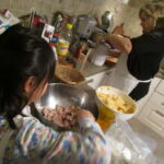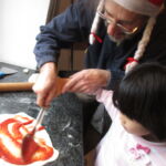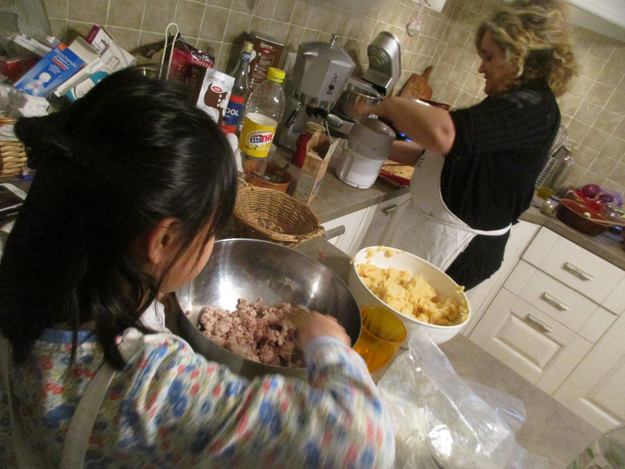 賑やかなキッチンに、隣に住んでるイオランダばーちゃんもたまらず乱入(笑)。日伊のおばあちゃん一緒の作業が実現しました!