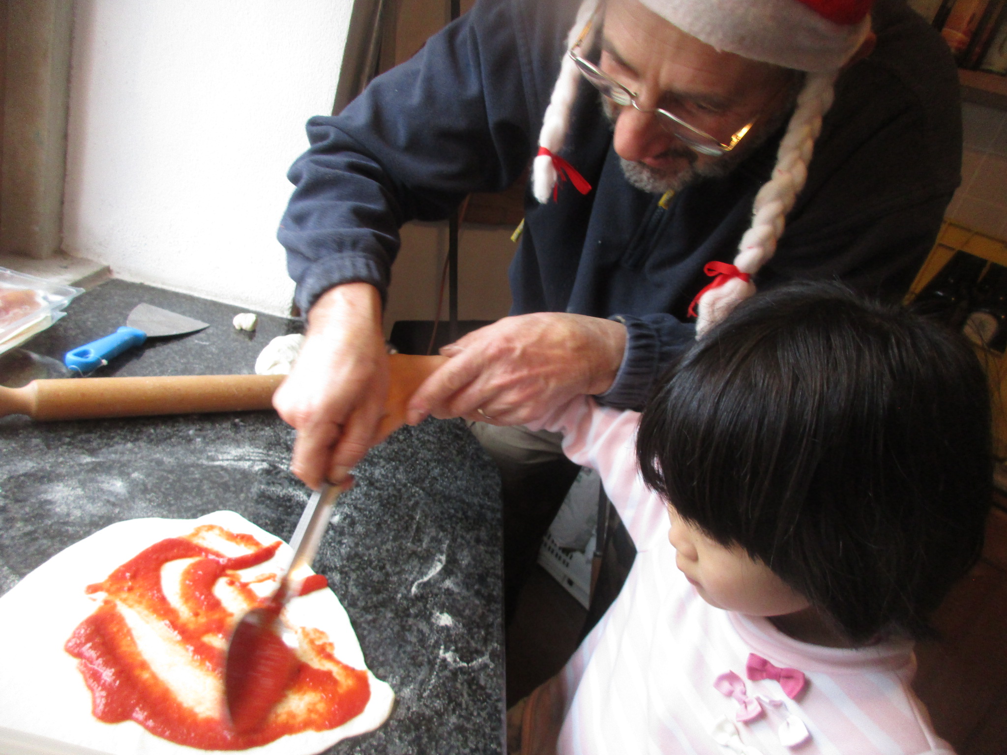 いったんパスタを食べた後は、仕事の昼休みに帰宅したフランチェスコとピッツァ作り!