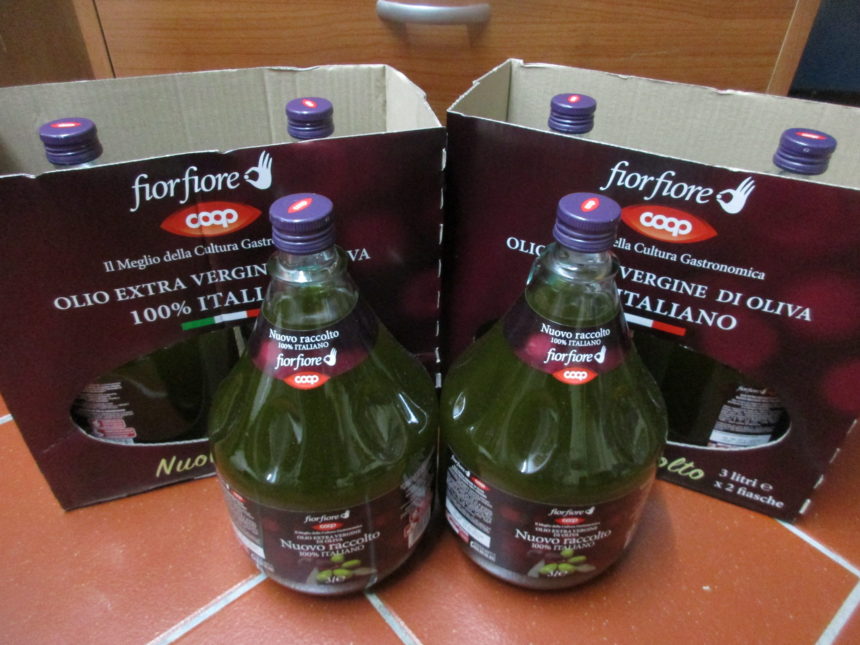 その内訳は、まず12月初旬にフランチェスコからもらった生食用(サラダやパン、スープやパスタにかける用)、12リットル。10リットルは購入、2リットルは我が家のオリーブの取り分(笑)です。生でトスカーナのオリーブオイルそのものの味を堪能するため、生産者さんから直買いでお値段も1リットル10ユーロ前後の値が張るもの。