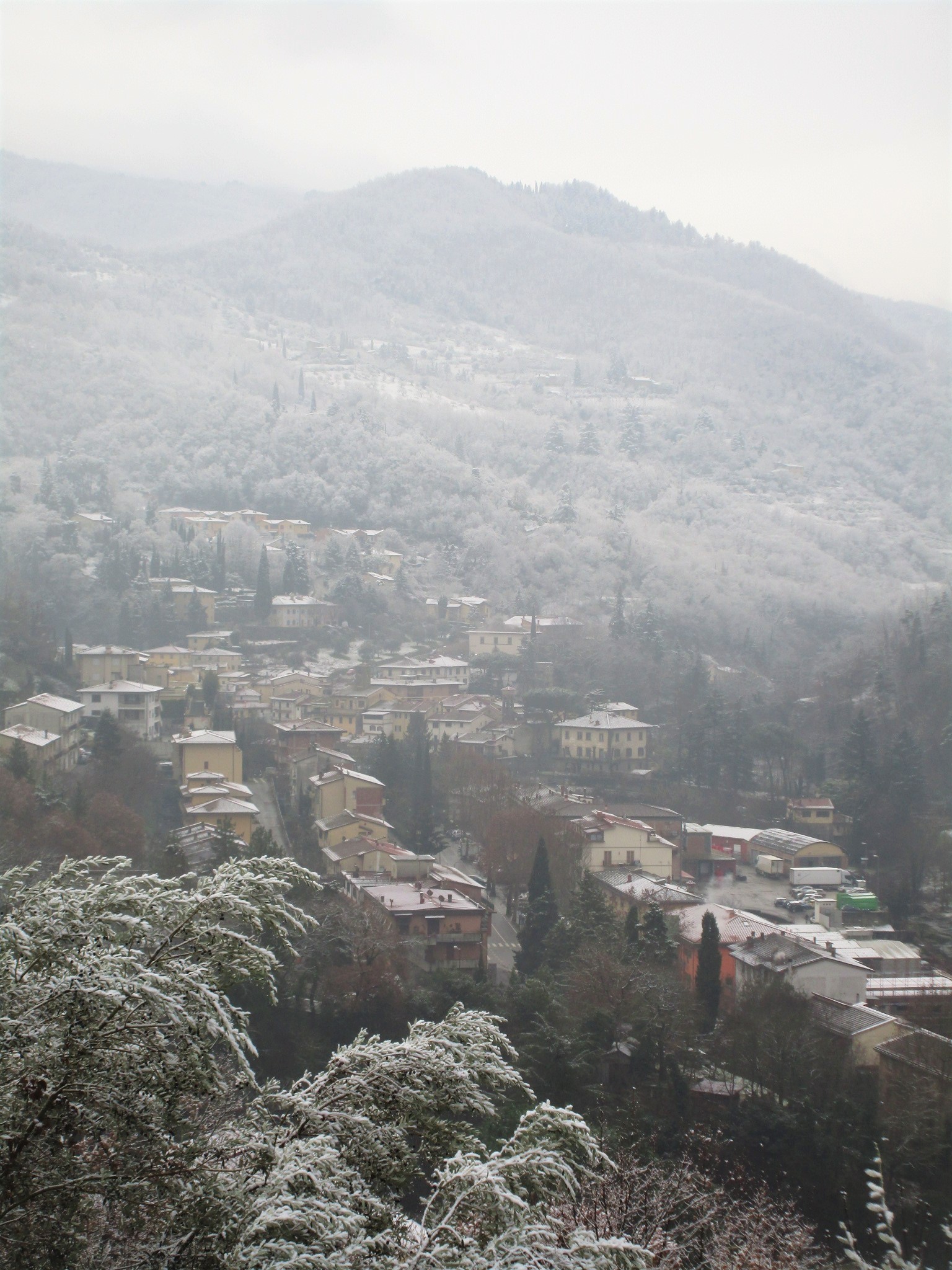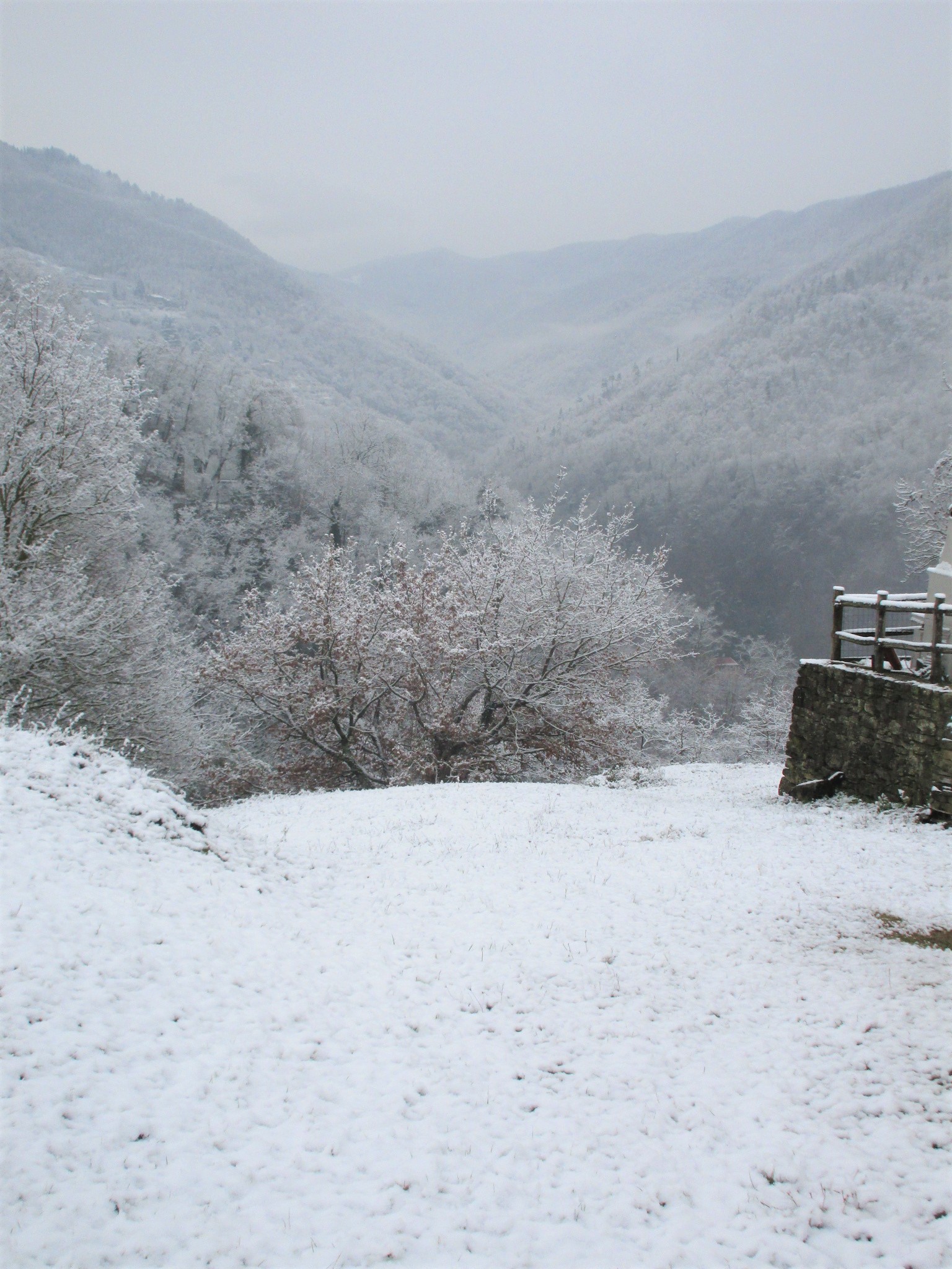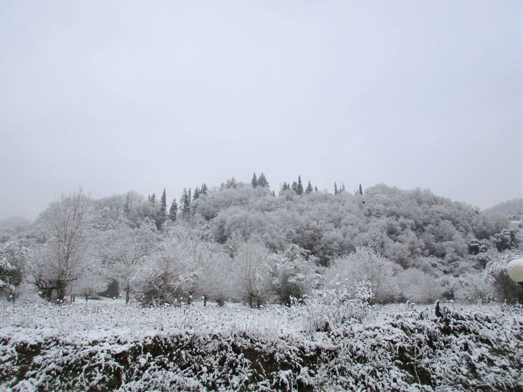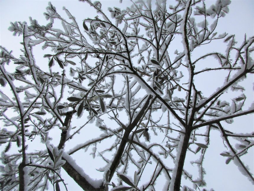 それから先のオリーブ畑にも行ってみました。オリーブに雪ってなかな見ることがないと思うので・・・