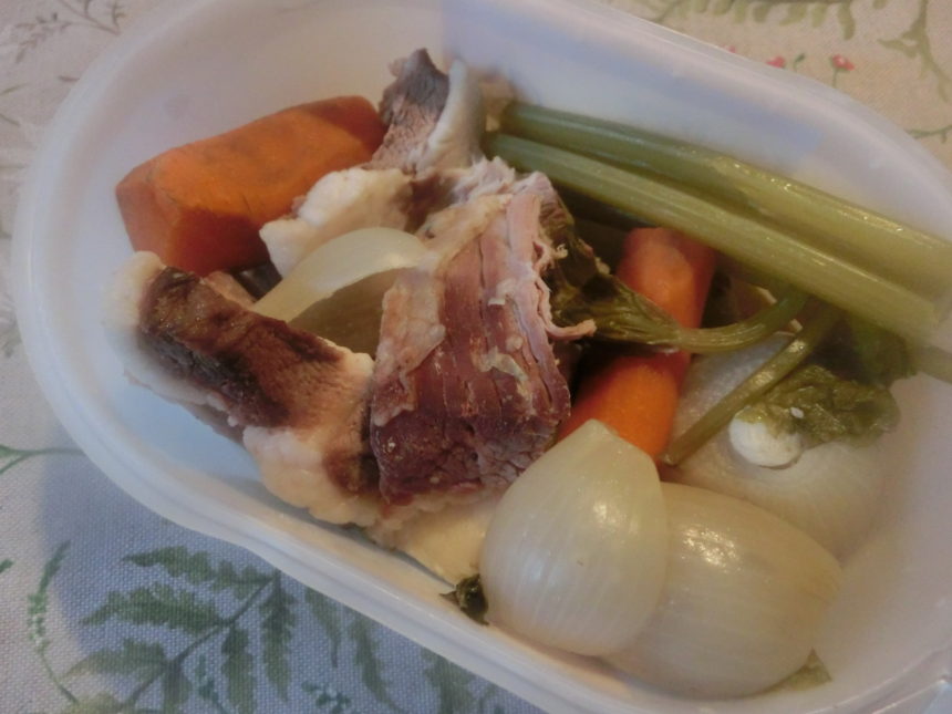 ◎ボッリートで残った肉、香味野菜、スープ ◎オリーブオイル・白ワイン・トマトピューレ・塩、適量