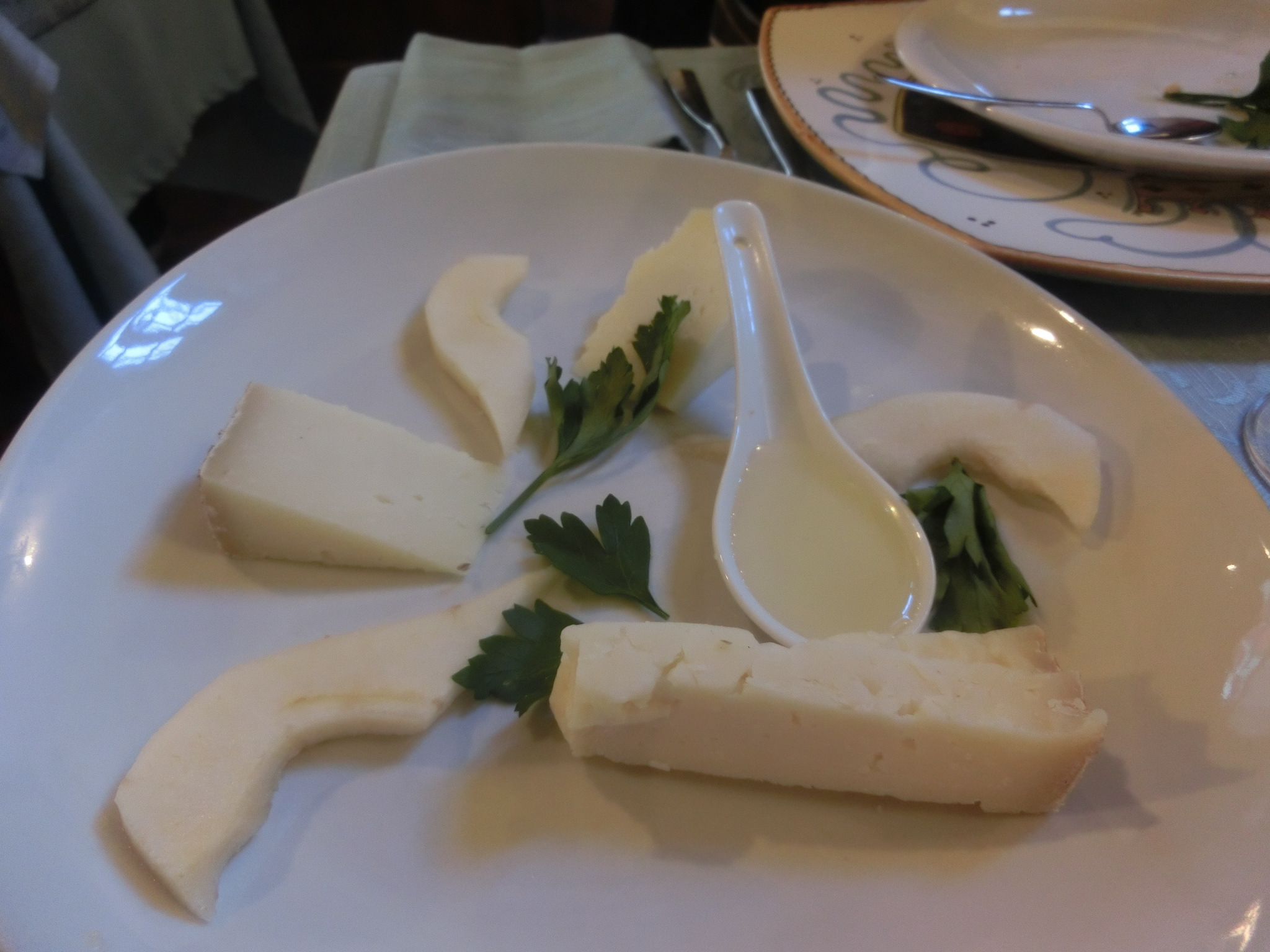 もう1つの頼んだ前菜は チーズの盛り合わせ・洋ナシとはちみつ添え。チーズはフレッシュ、半熟成、熟成の3種類。こちらはやはりチーズの国、果物やはちみつ、ジャムを添えたり、食べ方もいろいろです。