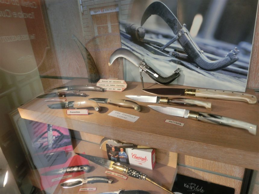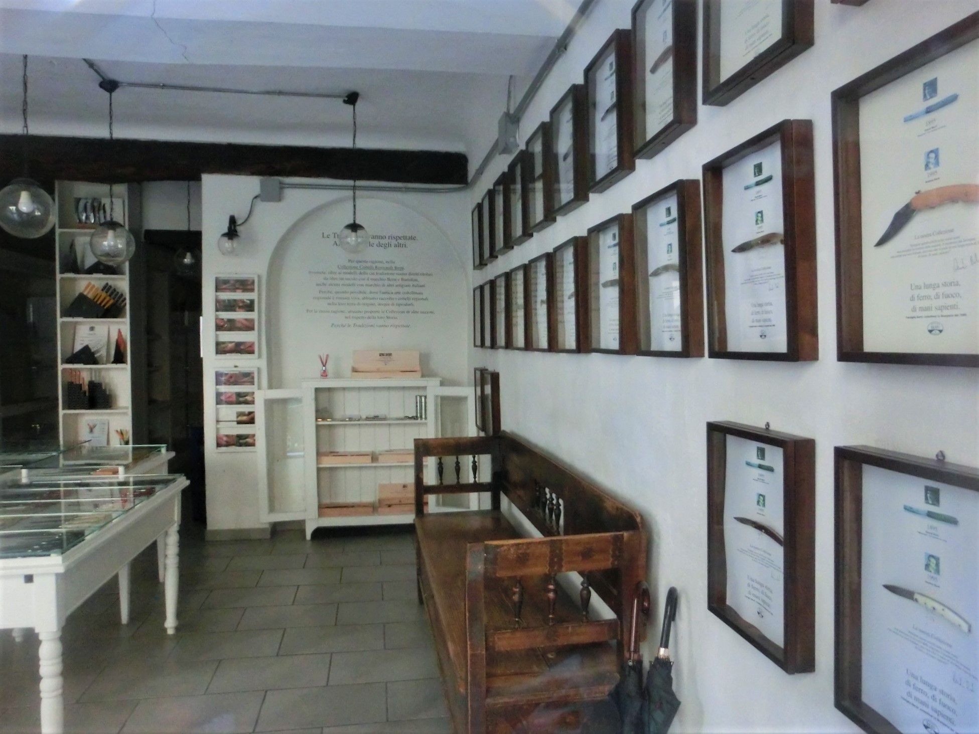 さて、歴史的な見所とは別に、この村の有名なものを2つ。1つは、伝統工芸品のナイフ!防衛という村の起源から分かるように、武器の必要性から中世よりナイフの生産が始まりました。現在はだんだん数は減っているものの、小さい旧市街の中に6~7軒のナイフ工房が今も残っています。写真上は、いかにも職人さんの工房!という Giglo (昔訪れてスタッフの方のおしゃべりが面白く、今回再訪したのですが、冬で平日閉まってました・・・またリベンジします)。