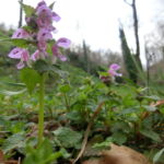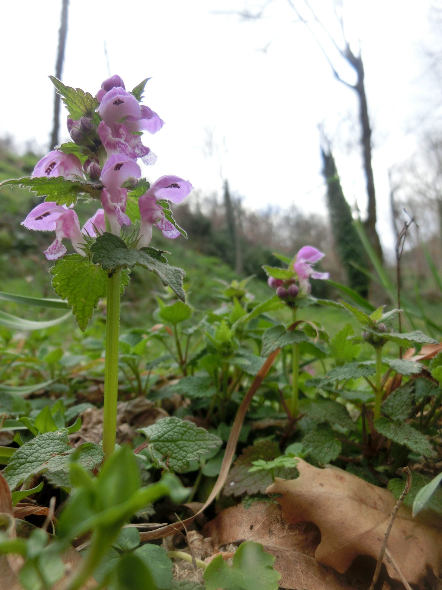 三角の葉に、しゅっと白で一筆入れたような葉っぱ。こんな風に結構な量で群生しているのですが、これ、ラミウムの原種・マクラツムだそうです。ググってみると、可愛らしいお花~よく見ると蕾もあるので、また花が咲いてるかチェックに行かなくては!