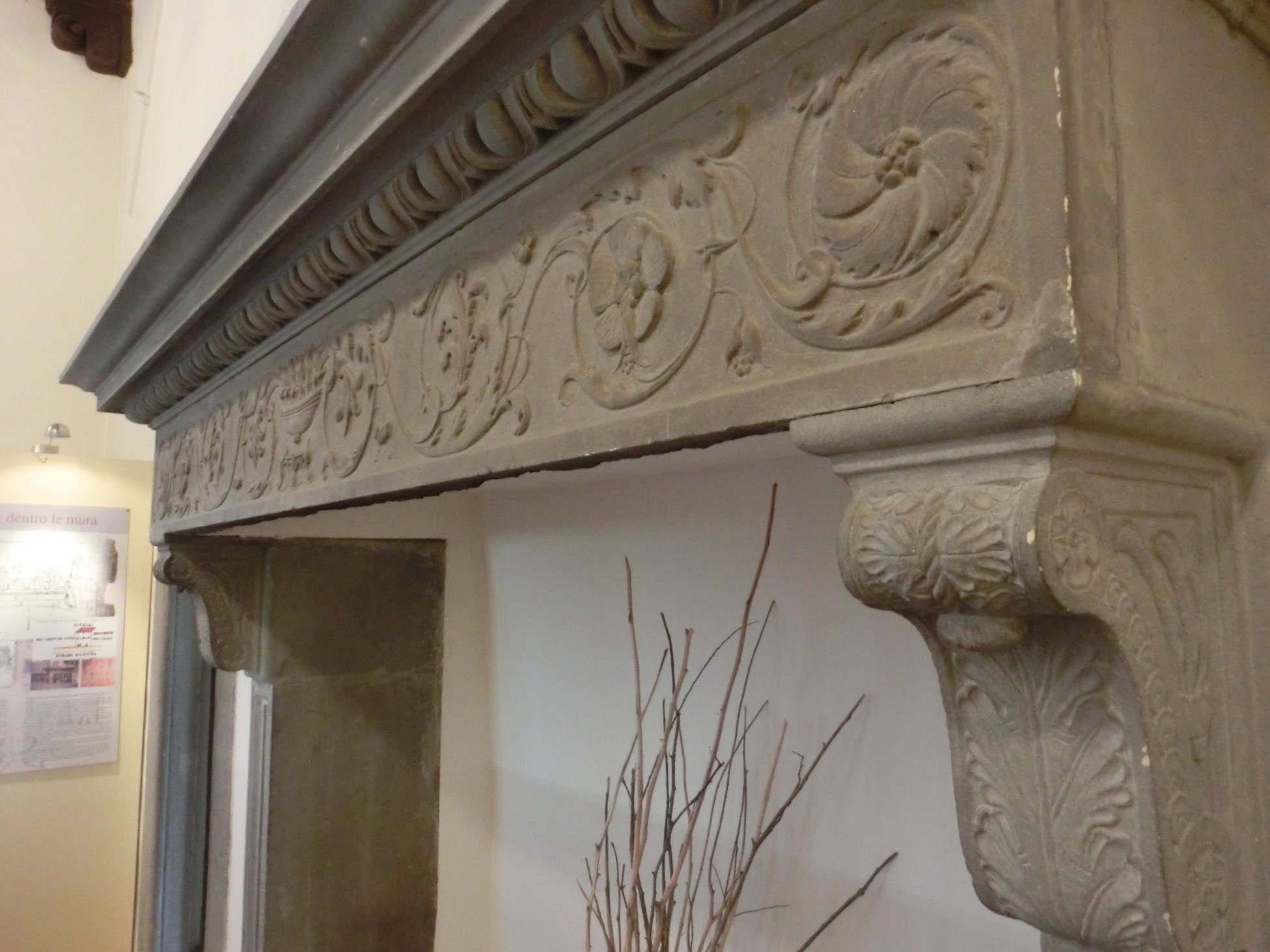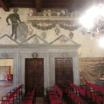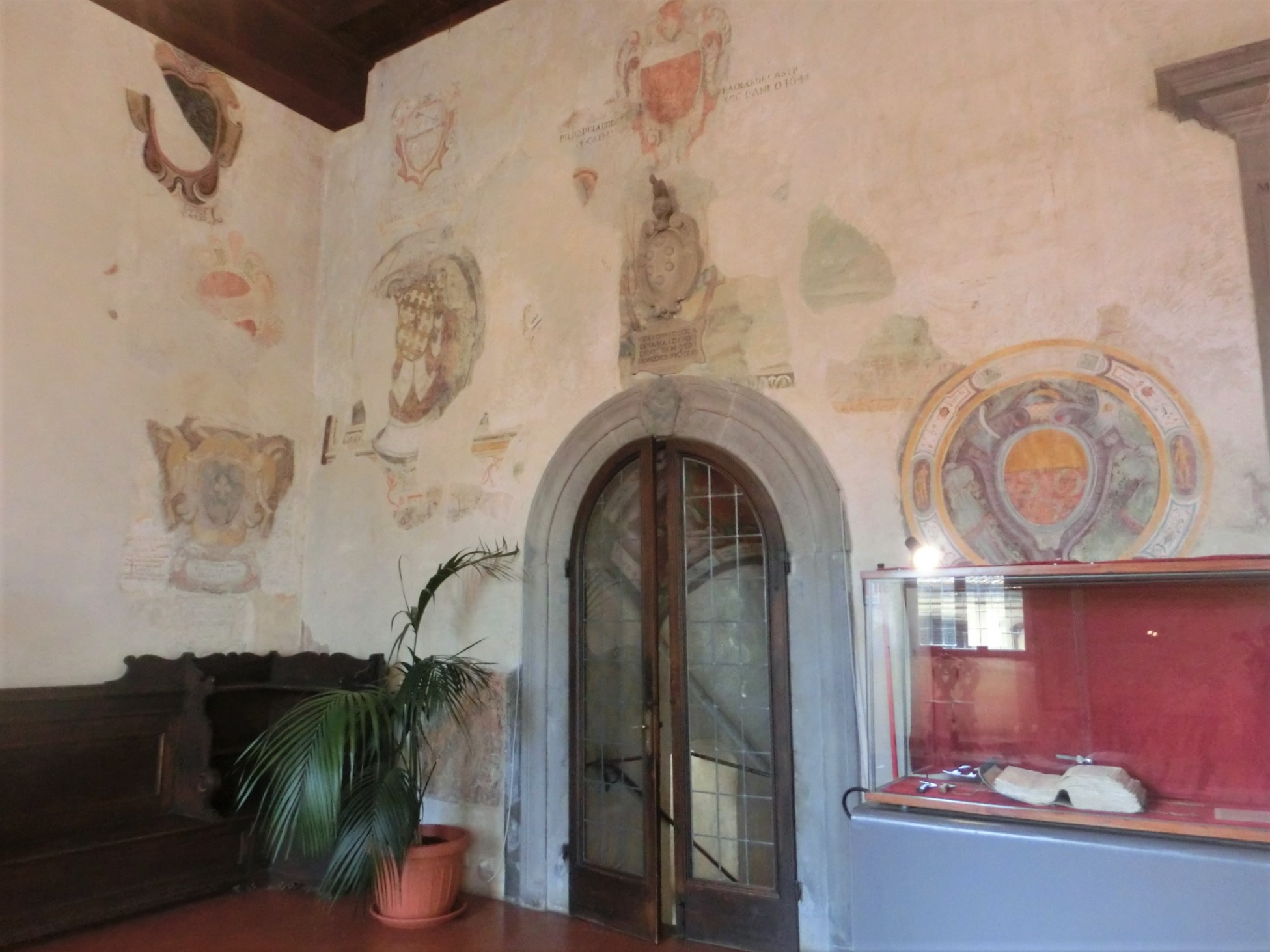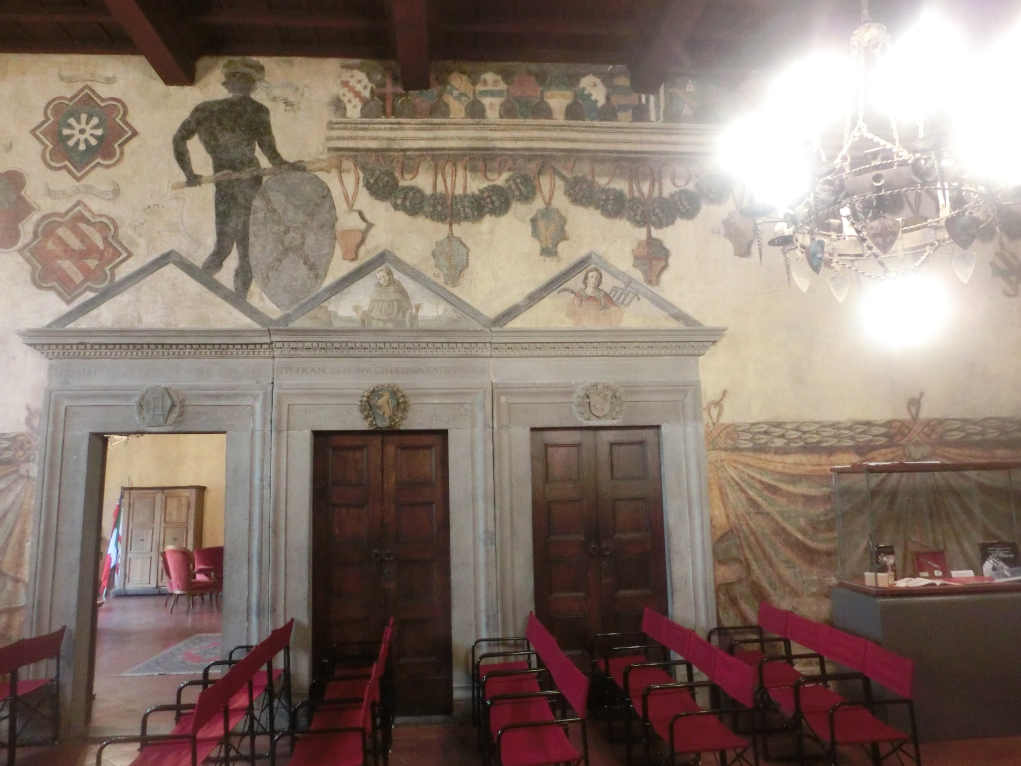 「イタリアの美しい村」にも選ばれている、フィレンツェ北部のスカルペリア。この小さな村の旧市街に、アンバランスなほどに立派なのが、このヴィカーリ宮殿。フィレンツェ共和国の北側の防衛目的で建てられた塔、そしてヴィカーリ(代理執政官)の為の建物に増築・改築されたもの。現在残っているほとんどは、その20年前の地震でつぶれた部分を改修した1562年のもの、そして修復を行った1937年~のものになります。20年ほど前まで市庁舎として実際に使用されていましたが、現在はミュージアムに。宮殿の正面扉を入って2つ目のホール、左側がミュージアムのエントランスになります。