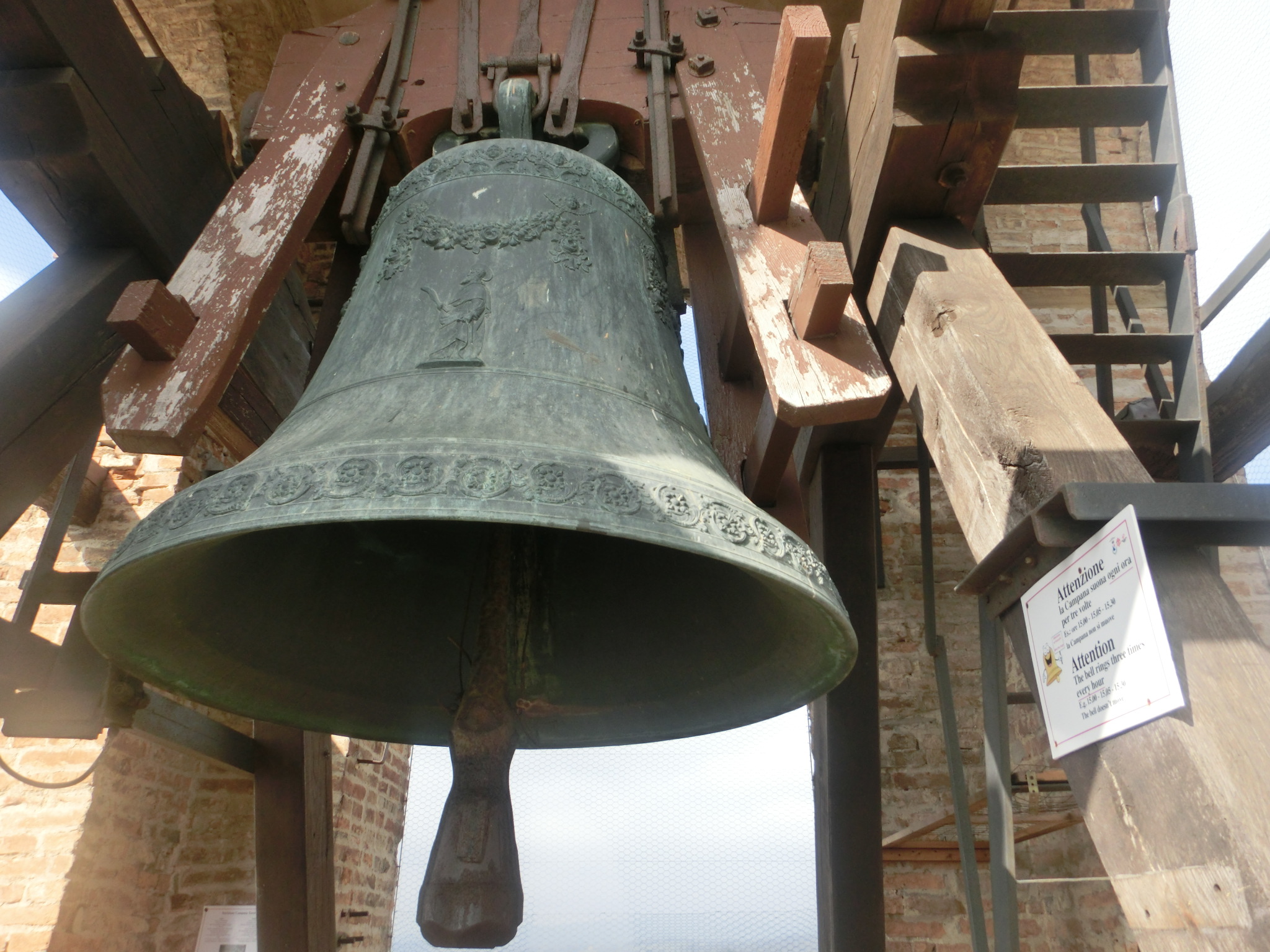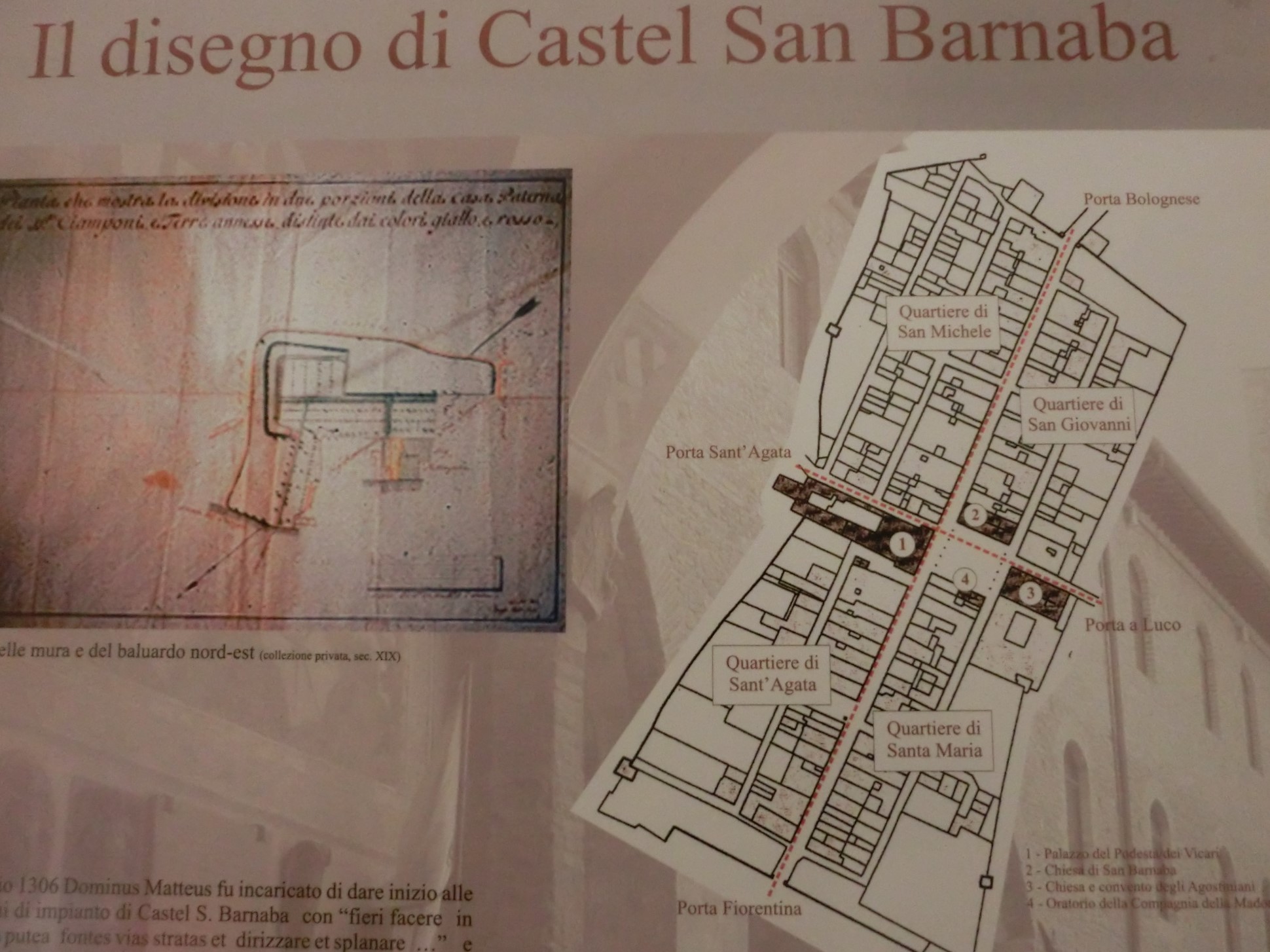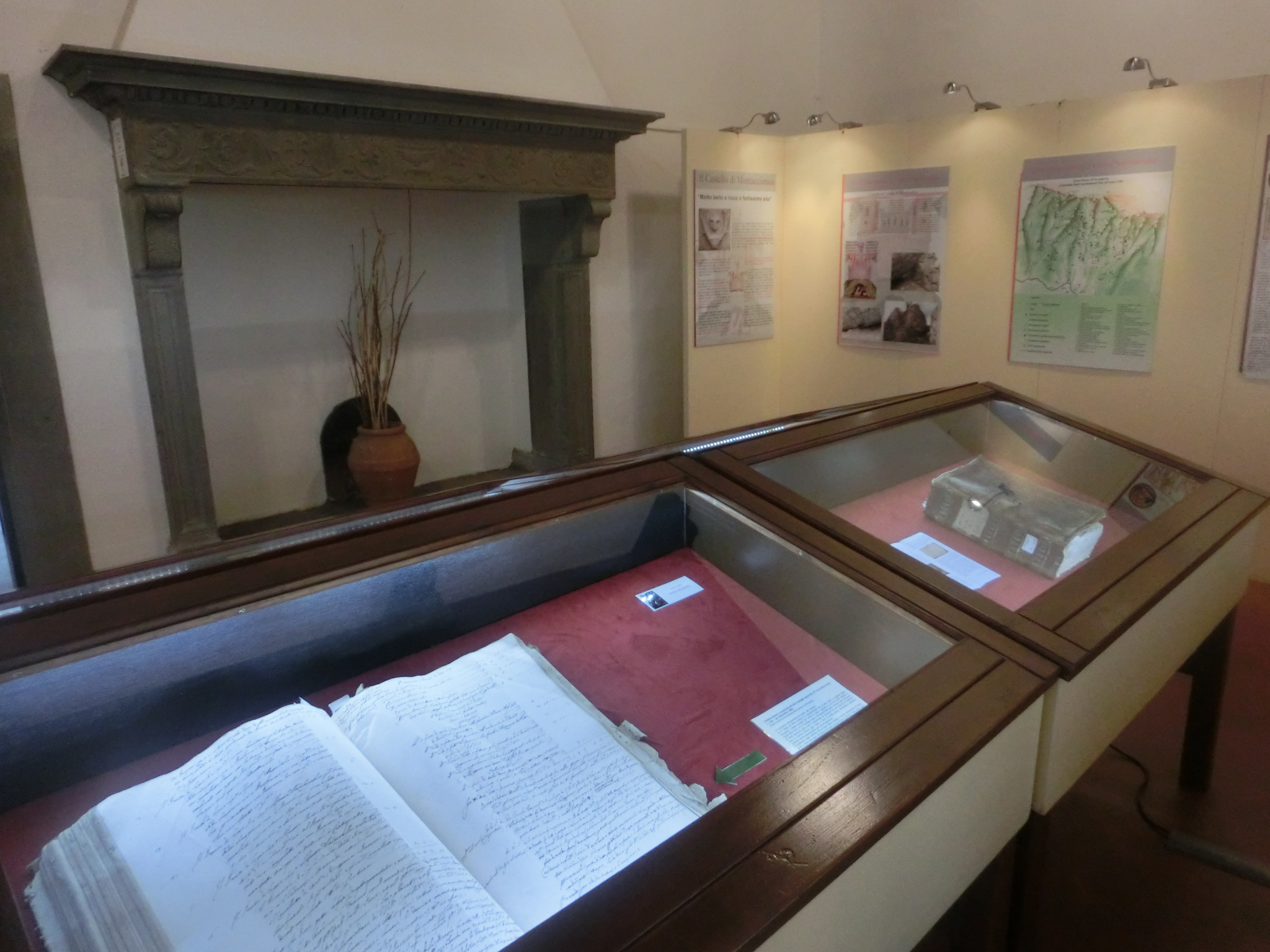 続いては、「oriolo(=orologioのトスカーナ方言)の間」。ここには、なんと1445年、亡くなる1年前にかのブルネッレスキが製作した塔の時計が展示してあるのです。これは「20フィオリーニ(当時のフィレンツェ共和国の通貨)で製作した」とフィレンツェ共和国の記録文書として残っているそう!5世紀以上に渡りこの村の時を刻んできたオリジナル、そしてその歴史や機構などのパネルが展示してあります。そしてこの間から、かつてこの時計があった塔に上ることができるのです。