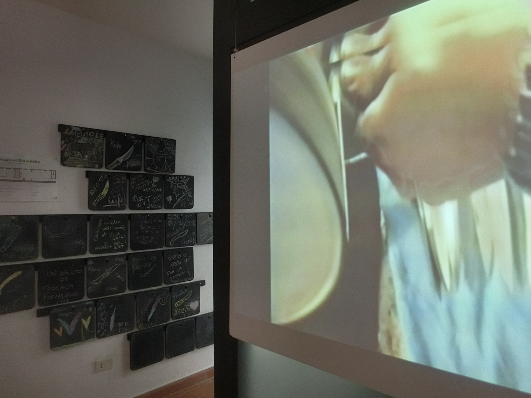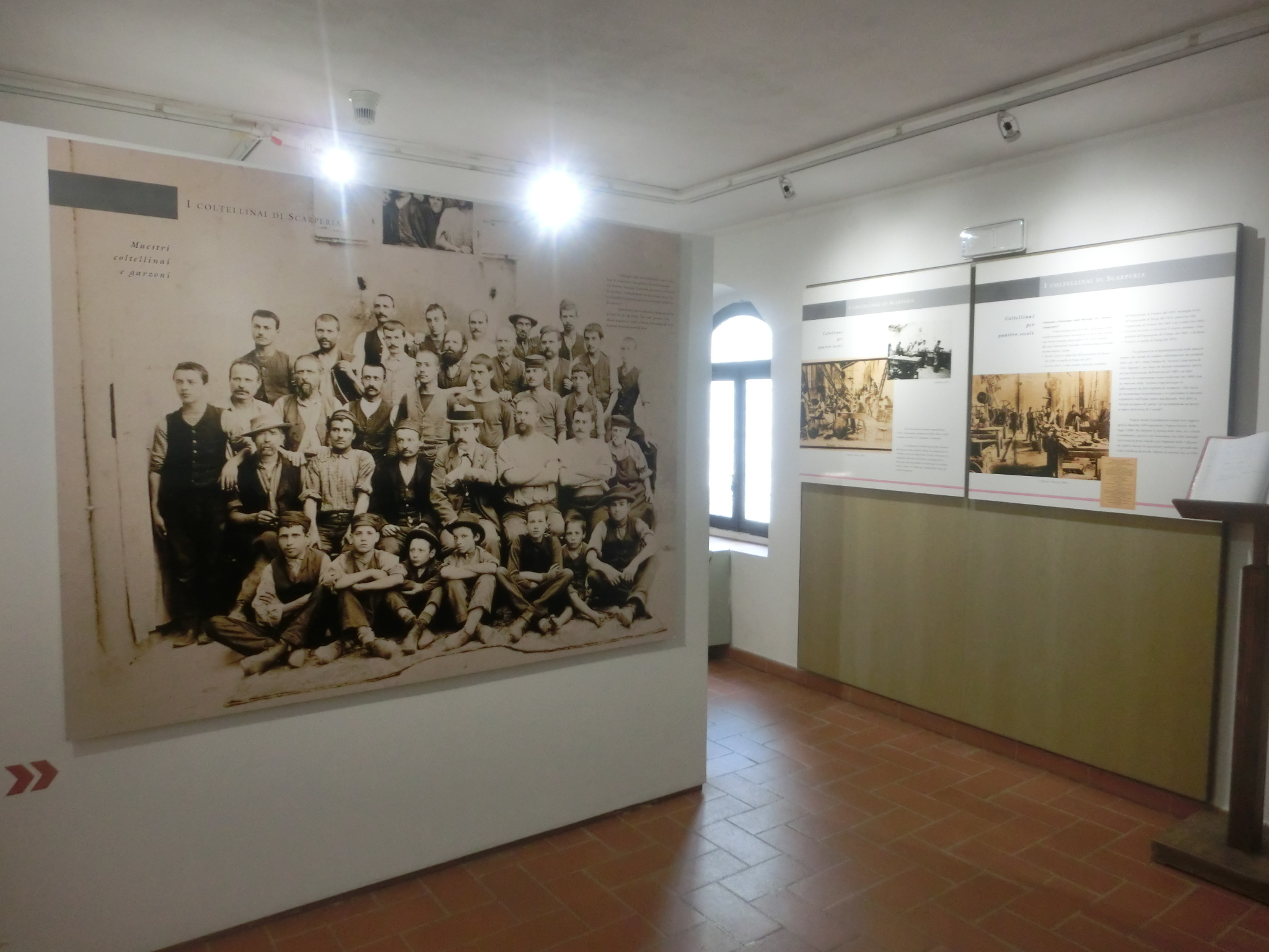 2番目は、スカルペリーアのナイフの歴史や、その工房について。スカルペリアのナイフ生産は14世紀の村の建設当時から始まり、1539年には素材や販売方法などの規定が制定されています。その後の発展により、品質や工房を守るための弟子制度についての規則が追加され、1630年に制定された規定では、機密事項である工房の技術流出を防ぐため、弟子は息子だけしかなれなくなったそうです。