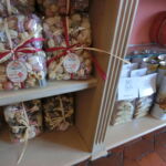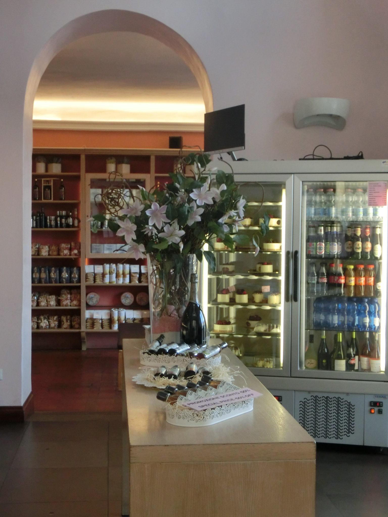 もう1つの嬉しい所は、カウンター前にベンチが1つ、そして奥の部屋にもベンチが2つあるので、座って食べられる可能性が高いこと。さらにこの奥の部屋にはワイン、お菓子、パスタなど食材も置いてあるので、お土産も買えてしまいます。店内はこんな風にピンク、白、茶色でまとめられていて、シック可愛い感じ。