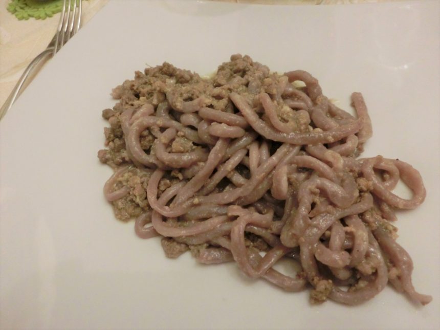 数年前は家でも、そして娘のレストランの助っ人でも、すごい量のパスタを打っていたグラツィエッラのオマージュパスタ。この地方の郷土パスタピチに、更に特産品の高級豚・チンタセネーゼのミンチと、モンタルチーノのブルネッロで極上のソース・・・美味しくないわけがありません。
