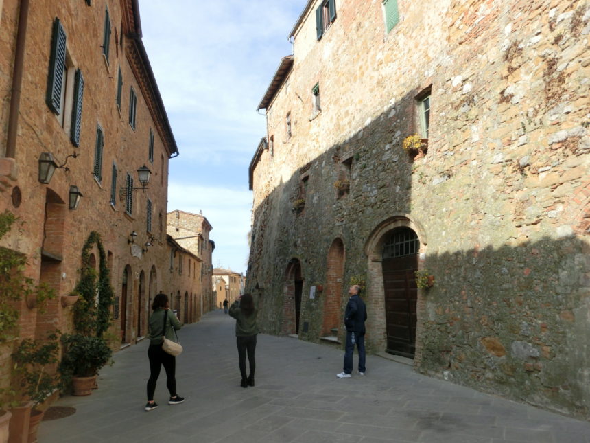 世界遺産のオルチャ渓谷のエリアは広く、主要な5つの市だけでなく、美しい小さな村や集落がたくさんあります。小さな村ながら、先日ご紹介したモンティキエッロはどちらかというとメジャーな方。今回ご紹介するモンティ―ジは、ピエンツァからシエナへクレーテ・セネージゾーンを通って行く際に、どこか立ち寄れる村はないかなぁとグーグルマップを見ながら検索して見つけた村です。エリアで言うと、まさにオルチャ渓谷とクレーテ・セネージが分かれる辺りで、一番近い市はピエンツァですがモンタルチーノの分離集落となります。周辺にもいくつか良さげな村もあったのですが、ハイヤーのジョルジョも、その中ならモンティ―ジが良いと言うので、実際に寄ってみると・・・これが、私の中でも久々の大ヒット!で、すっかり気に入ってしまいました。