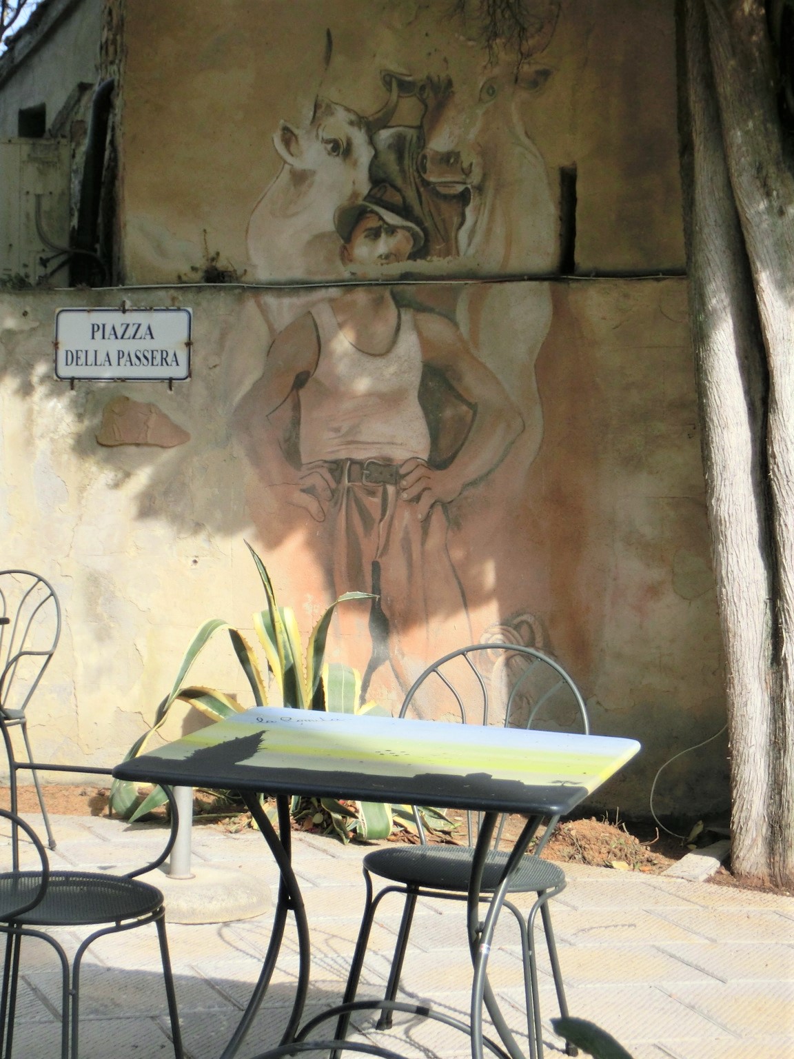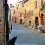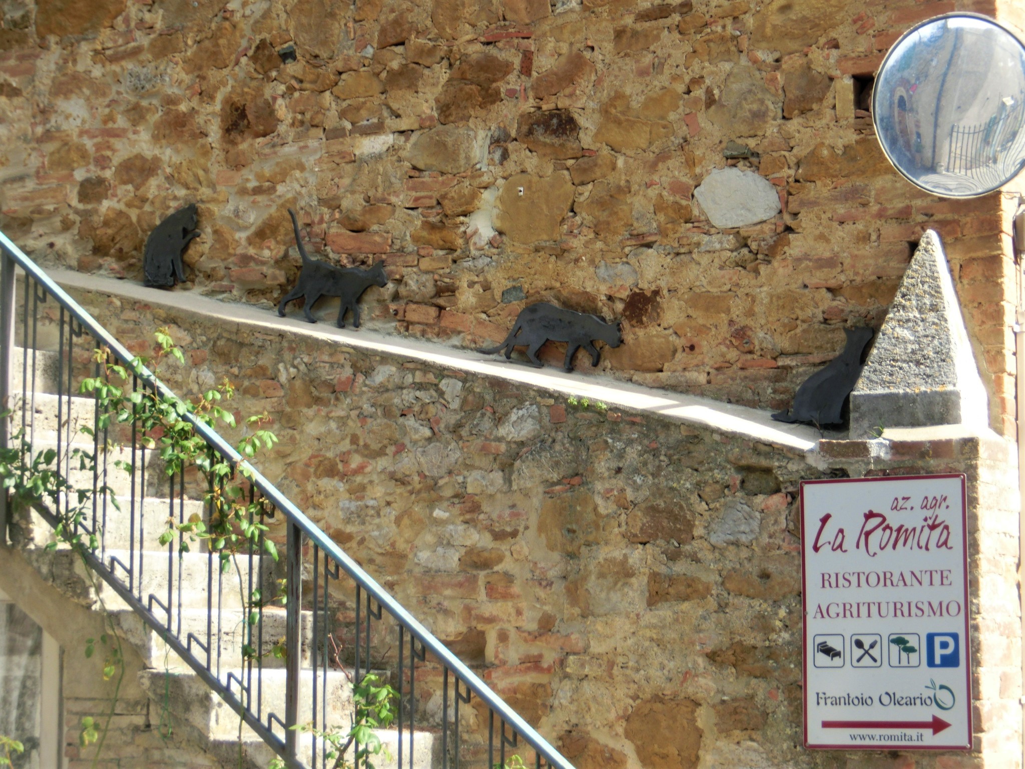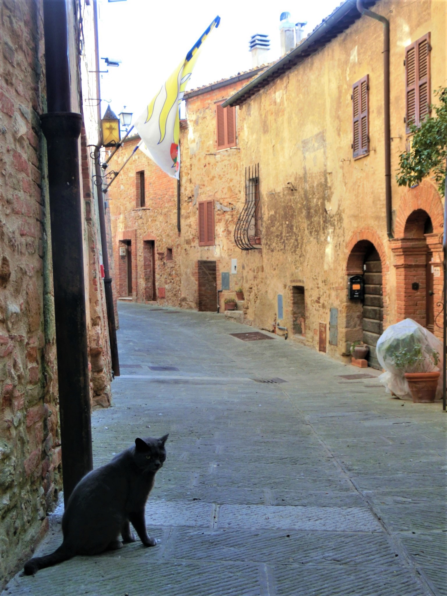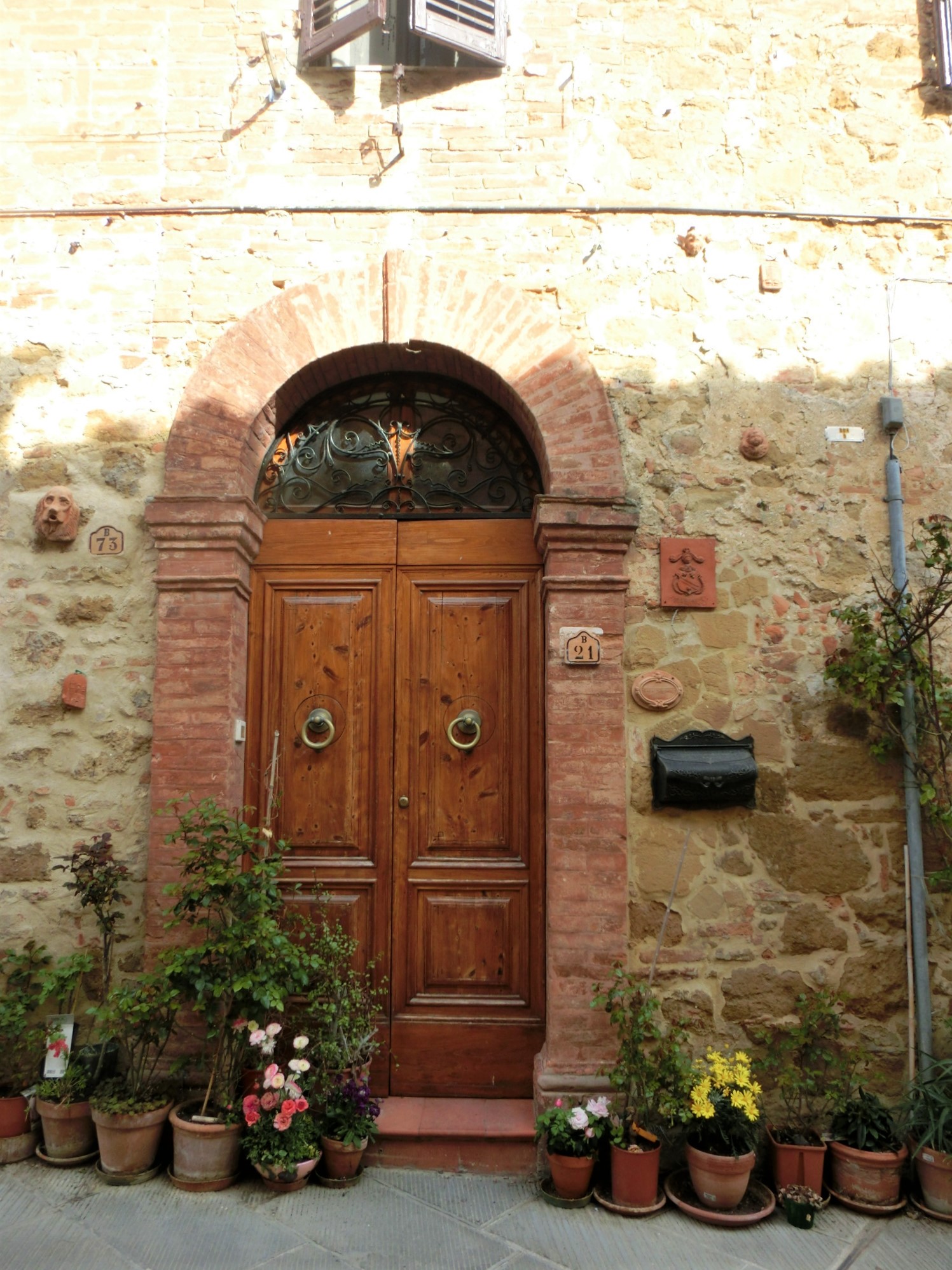 ピエンツァから北に向かう道は、ちょっと山深くて景色もあまり見えないのだけど、しばらくすると丘の上にこんな風にモンティ―ジが見えてきます。村の起源はエトルリア時代に遡り、名前は2キロほど先にあるイシス神にささげられた教会にちなんで=Monte Iside(イシス神の山)、からつけられたとされています。特に城塞や門があるわけでもなく、さらっと村の中に入ってしまい、たぶんこの辺が中心かな、と思われる場所で車を下車。観光案内所もなく地図もスマホのグーグル以外ないけれど、迷う心配のない小ささ&時間も余裕があったので、気ままに散策を開始しました。