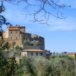 シエナからTiemme社のバス109番で約1時間半(1日1本)、フィレンツェからアレッツォ乗り換えで電車で2時間半前後・シナルンガ駅からバスST1番で20分(1日4本)。周りは見所が多いので、オルチャ渓谷の他の場所と合わせてハイヤーで周るのが便利です。