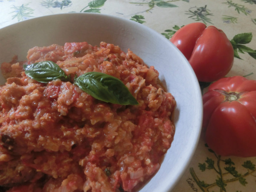パンツァネッラに並ぶトスカーナ料理の夏の定番は、パッパ・アル・ポモドーロ(トマトのパンがゆ)!こちらもパンツァネッラと同じで、固くなったパンを再利用する料理です。なので、私も食べるまでは“ふやけたパン・・・気持ちわるぅ”と思っていました。が!こちらもハマってしまう美味しさ。ちなみにパッパの意味は、“離乳食”や小さい子供に対して使う”(一般的な)ごはん”ですが、これを離乳食として食べることはありません(笑)。